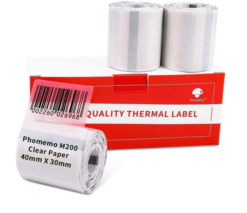 Phomemo 3 rolki przezroczystej etykiety, wielofunkcyjna samoprzylepna przezroczysta etykieta, 40 mm x 30 mm, 240 etykiet / rolka, kompatybilna z drukark? etykiet Phommeo M110 M120 M220 M221 M200