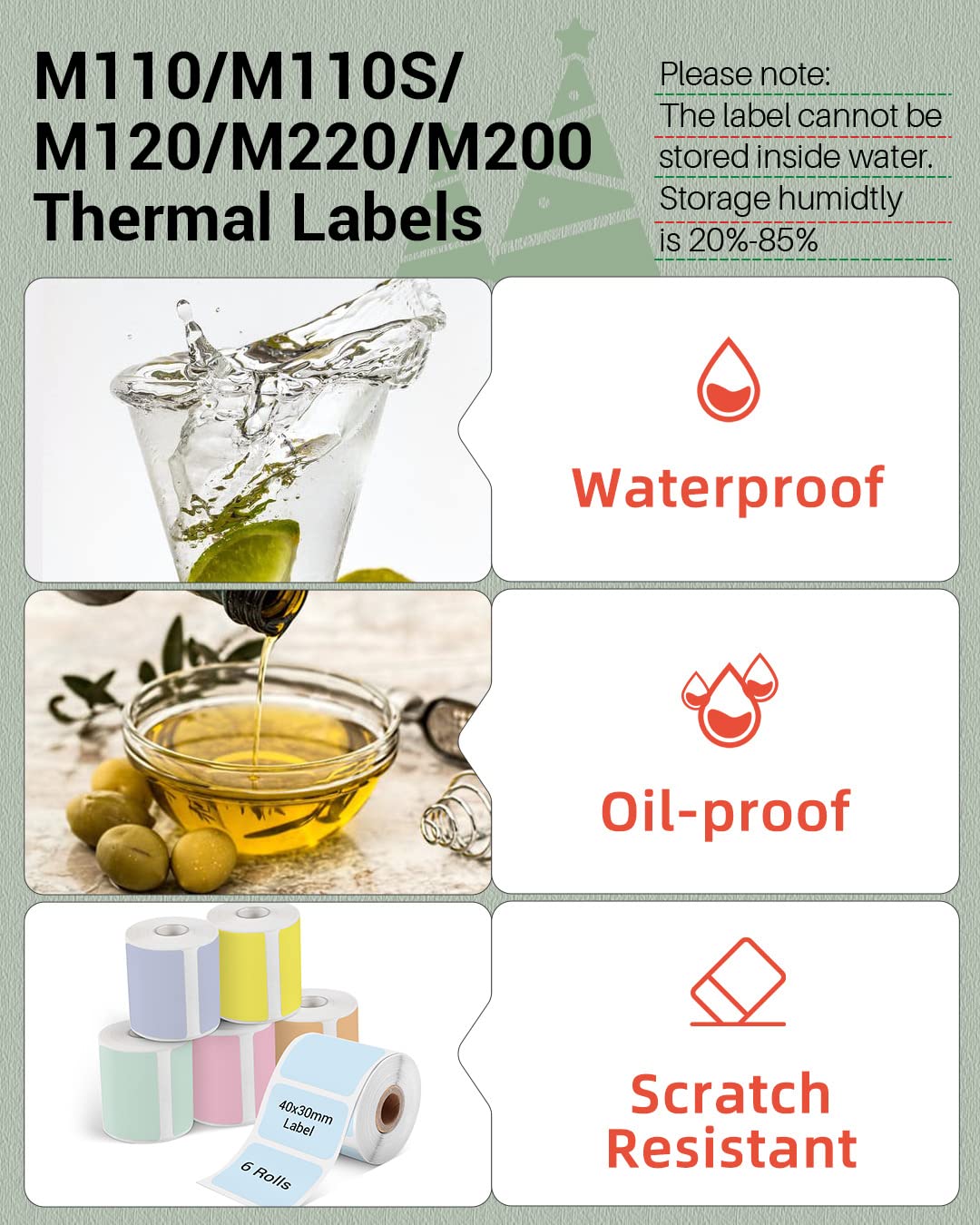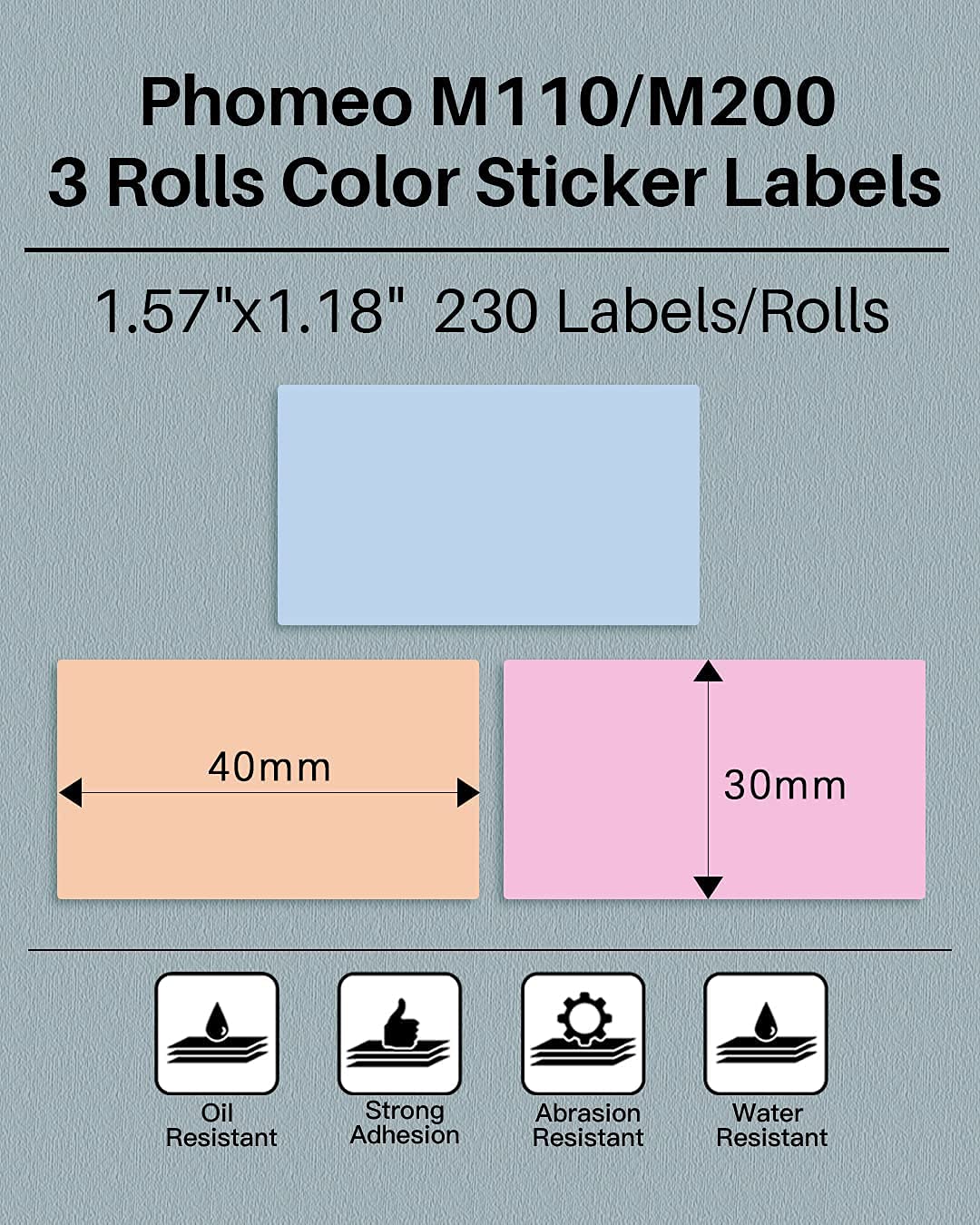 - Multifunktionales rechteckiges Etikett, Produktgröße -1.57''x1.18'' (40x30mm); Anzahl der Etiketten pro Rolle: 230. Kompatibel mit dem Phomemo M110 M200 M120 M220 M221 Etikettendrucker