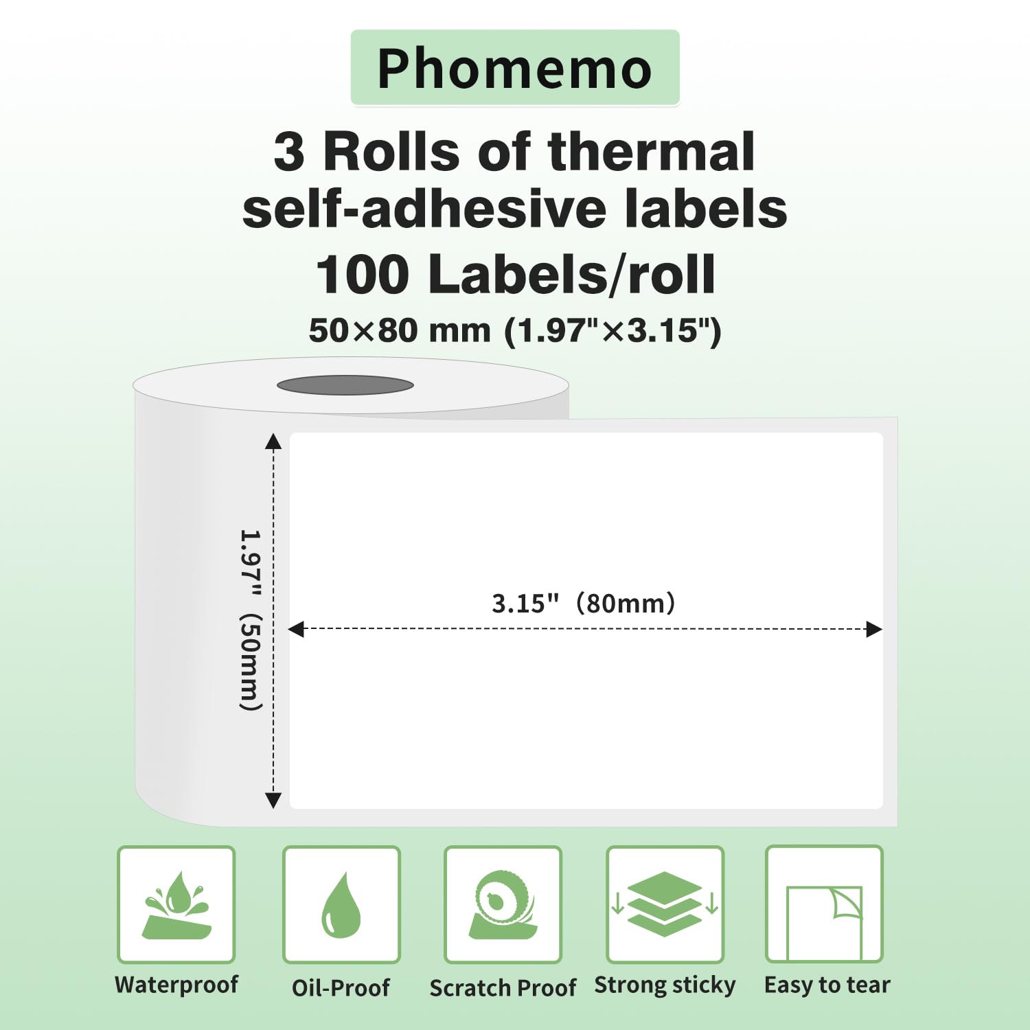 Phomemo 3 Rollen M110 etikettenpapier,Multifunktionales selbstklebendes f¨¹r Phomemo M110 M200 M120 M220 M221 Etikettendrucker Etikett 1.97''x3.15''£¨50x80mm£©, Insgesamt 3 Rollen,100 Etiketten/Rolle