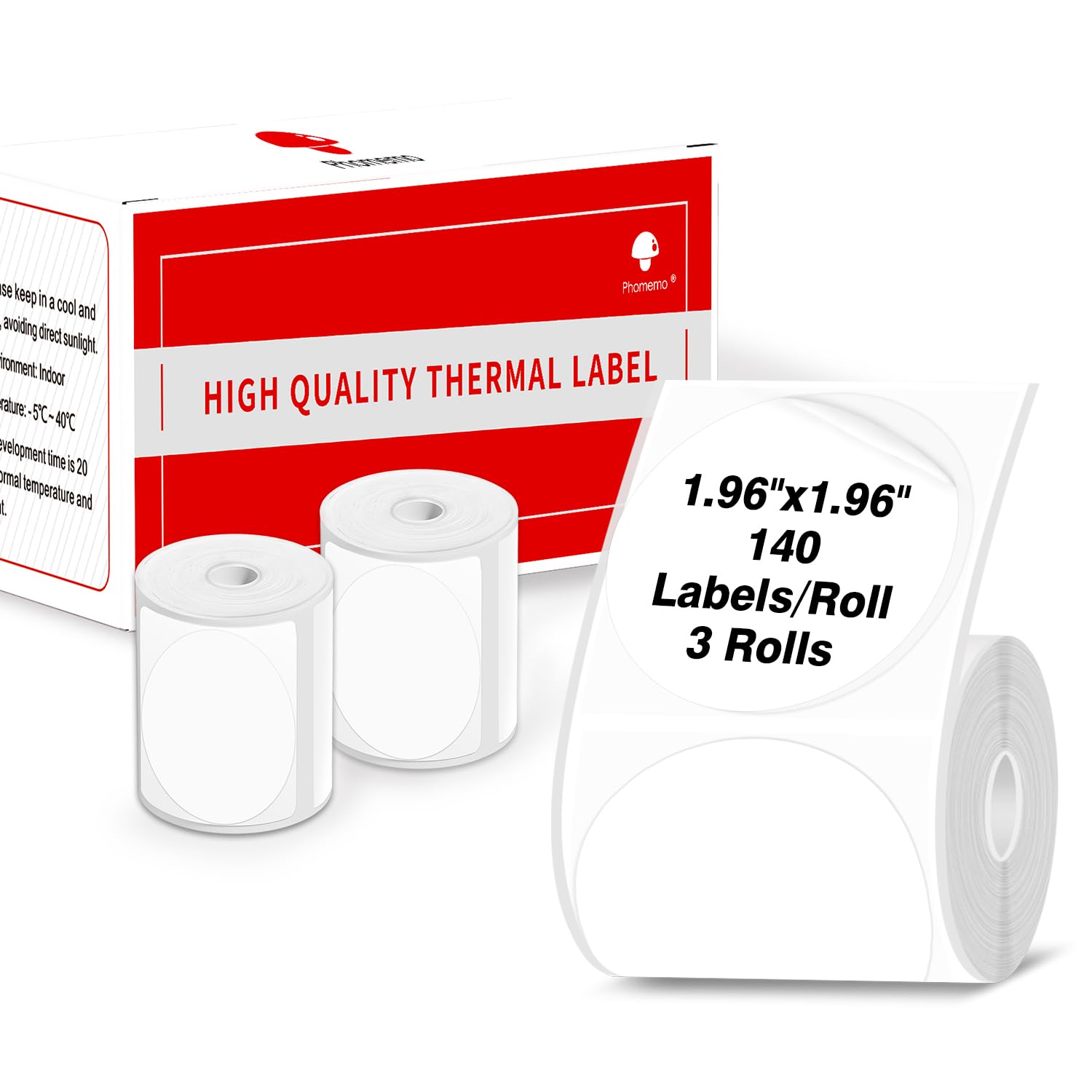 Phomemo 3 Rotoli Etichette Rotonde Per Stampante M110/M221/M220/M120/M200, 50 X 50mm Etichetta Circolare Rotonda Per Etichette, Adatto Per Ufficio, Famiglia, Scuola, Nome, 140 Etichette/Rotolo, Bianco