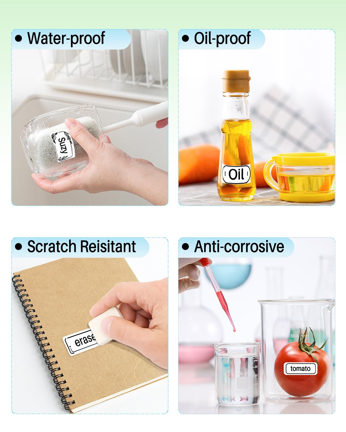 - [Ampio utilizzo] I nastri di alta qualità per etichettatrici aderiscono a plastica, carta, metallo, legno e vetro ed sono ideali per etichettare forniture per ufficio, accessori elettronici, utensili, oggetti da cucina, attrezzature per garage, contenitori, armadi per forniture, scatole di stoccaggio, oggetti personali, artigianato, regali, file e altro ancora per identificare gli oggetti e organizzare rapidamente.