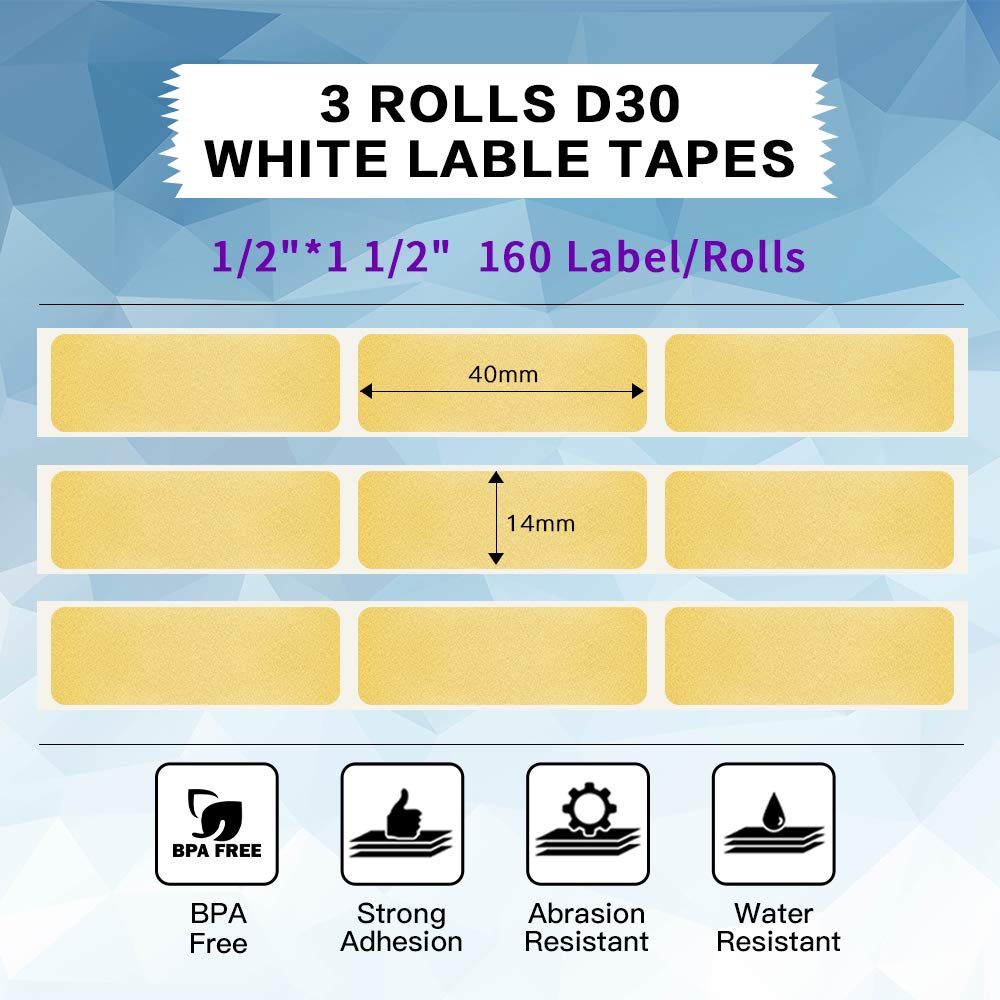 - 3 rouleaux ¨¦tiquette transparente rectangulaire multifonctionnelle, taille du produit -14 mm * 40 mm; compatible avec l'imprimante d'¨¦tiquettes Phomemo D30. Nombre d'¨¦tiquettes par rouleau: 160. Il y a trois volumes, (poudre d'or transparente)