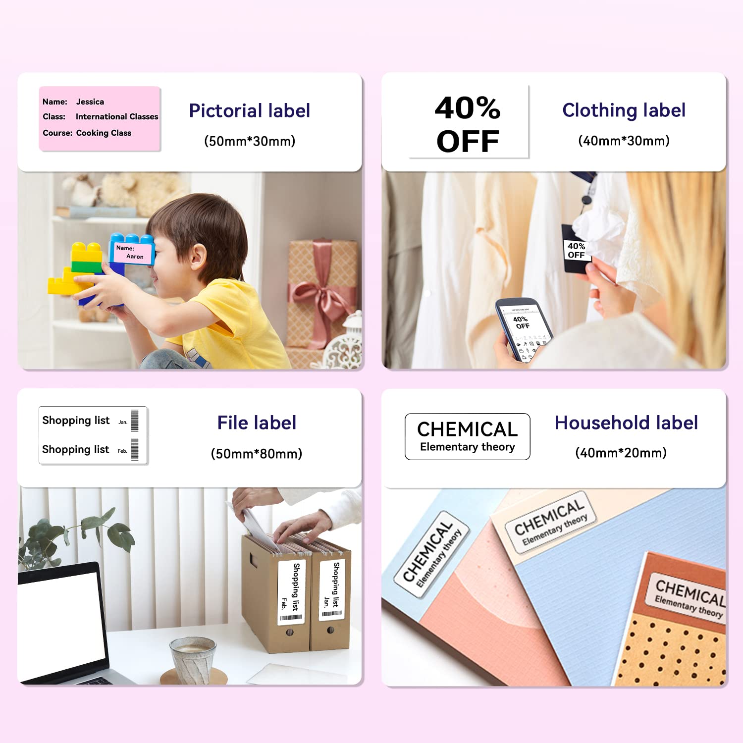 - √Les étiquettes thermiques Phomemo sont parfaites pour les étiquettes de produits, les autocollants commerciaux, l'artisanat, les autocollants de boulangerie, les autocollants de mariage ou les sceaux d'enveloppe. Elles peuvent être utilisées non seulement à la maison, mais aussi dans un large éventail d'applications telles que les bureaux, les écoles, les supermarchés, les magasins de détail, les bijouteries, les bibliothèques, les pharmacies et bien d'autres encore.