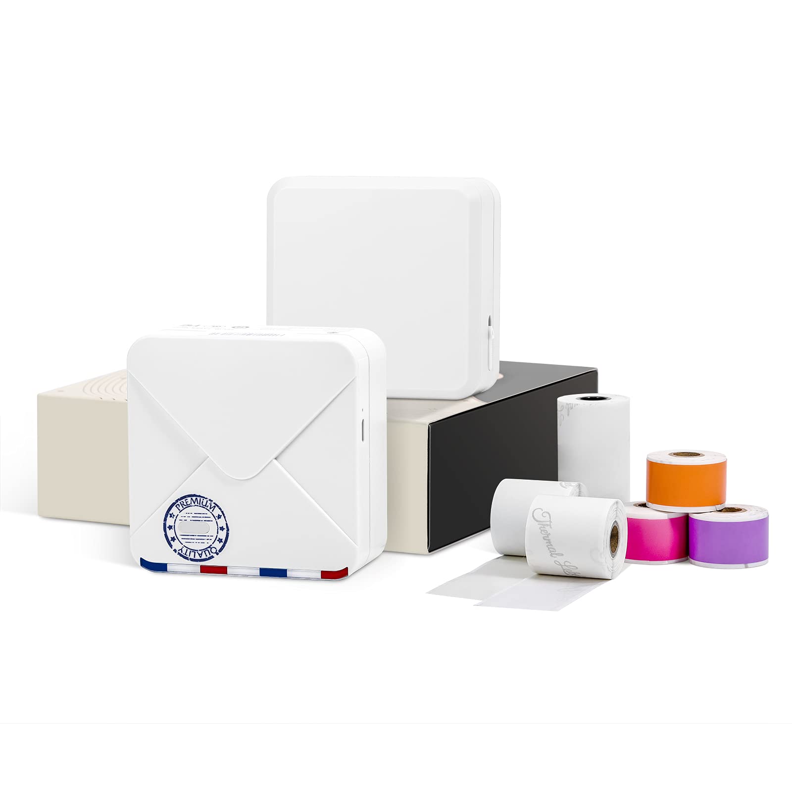 Phomemo 300dpi Pocket Printer- M02S 2inch Bluetooth Thermal Note Printer for Photo Printing, Study Notes, DIY, Work List, Sticker, with Total 6 Rolls Paper, Compatible with iOS and Android, White