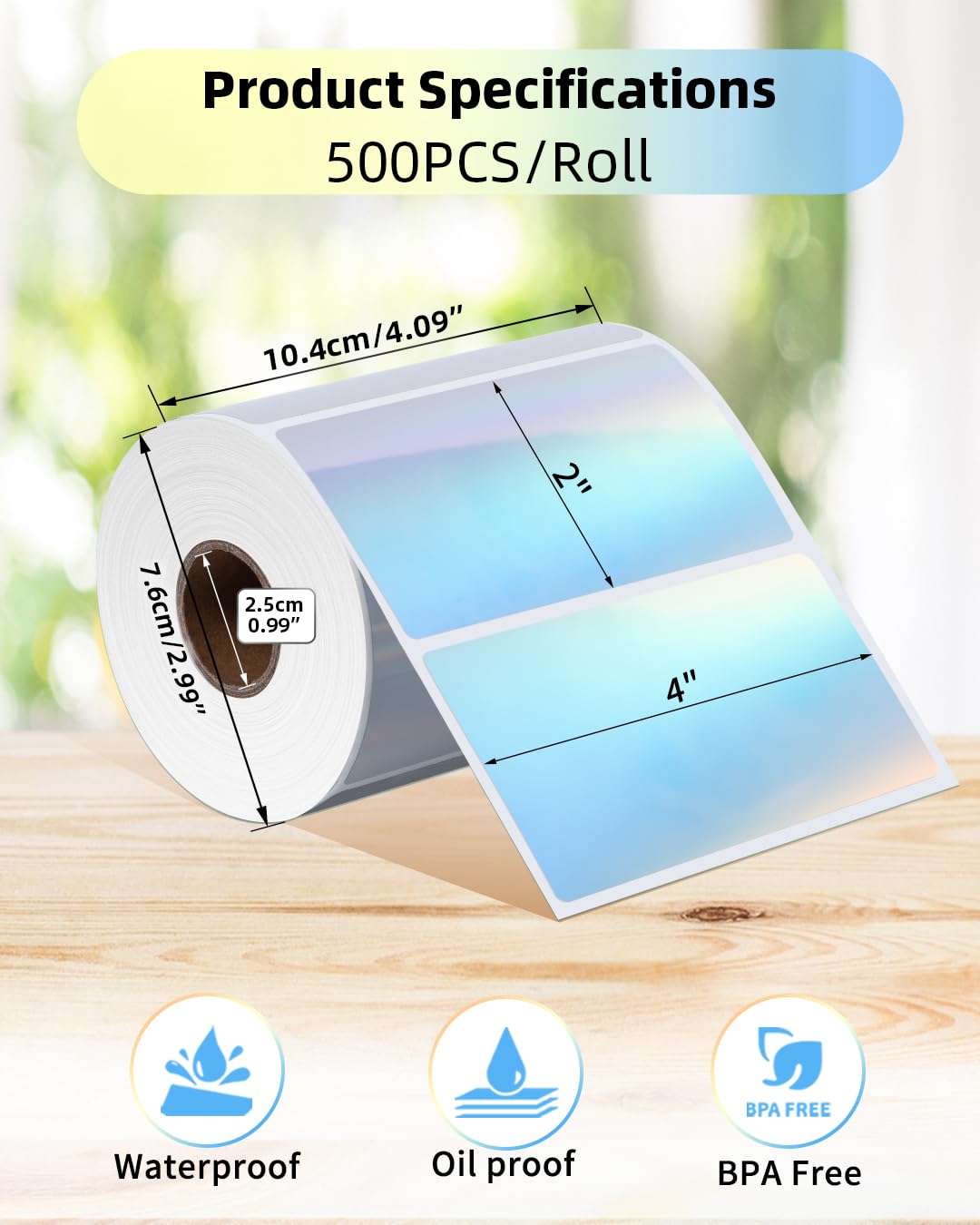 - Spezifikationen des Versandetiketts: 4'' x 2'' quadratische/rechteckige thermische Lieferetikettenrollen, 500 Etiketten/Rolle. Keine Tinte oder Toner erforderlich