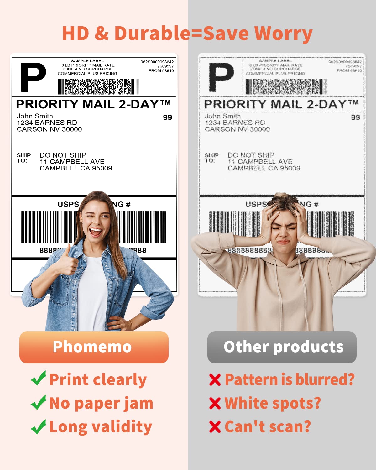 - ?Premium Quality mailing labels - Lint free paper reduces paper jams. Water resistant, oil resistant, friction resistant for extreme durability. Phomemo label printer label paper are 100% BPA/BPS Free which provide high quality crisp, dark imaging and smooth printing effects and fast processing
