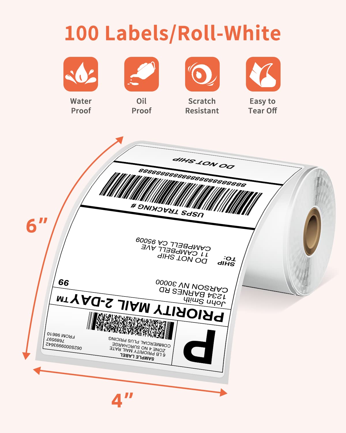 - ?Specifications: White 4''x6''thermal printer label, 100 Labels / Roll. Apply to printing barcodes and tracking labels and more. Ensure exact delivery whether you have a home business or large shipping work