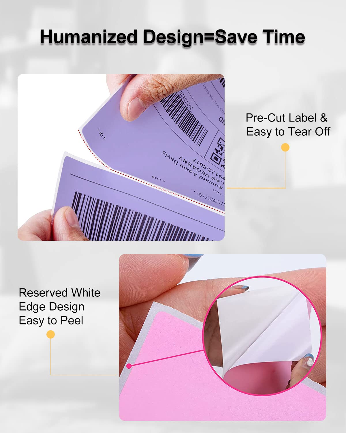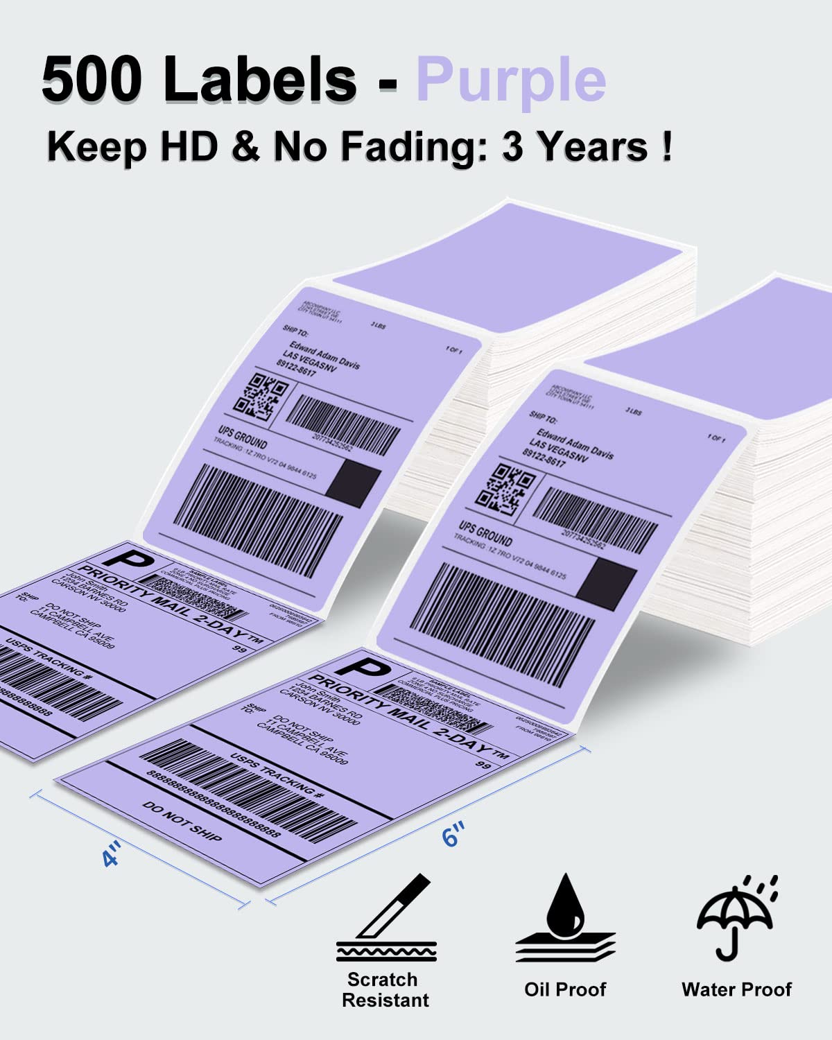 Phomemo 4x6 Thermal Labels for Shipping Label Printer - 500PCS Purple Mailing Labels - 4x6 Direct Thermal Labels Fanfold Compatible with Rollo,MUNBYN,iDPRT,JADENS,POLONO - Water/Oilproof - NO BPA/BPS