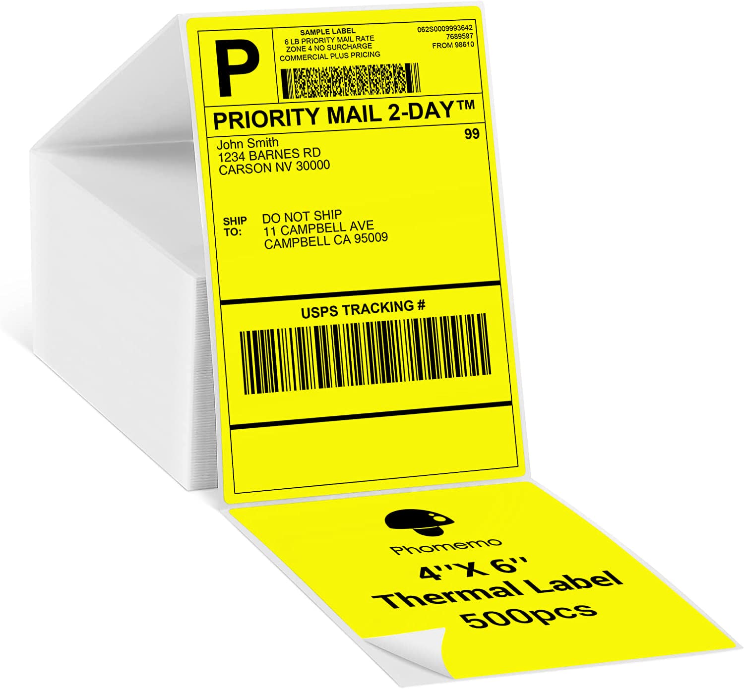 Phomemo 4x6 Thermal Paper Printer Label Thermal Direct Bill of Lading Packaging Labels Compatible with Rollo Phomemo and Other 4x6 Label Printers (Pack of 500 10x15cm Fan-Folded