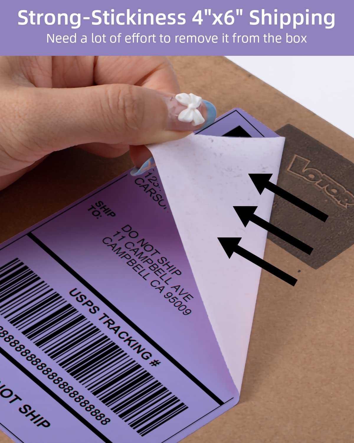 Phomemo 4x6 Thermal Paper, Printer Label, Thermal Direct Connect, Packaging Labels, Compatible with Rollo Phomemo and Other 4.6 Label Printers (Pack 500 4'' x 6'' Labels), Purple