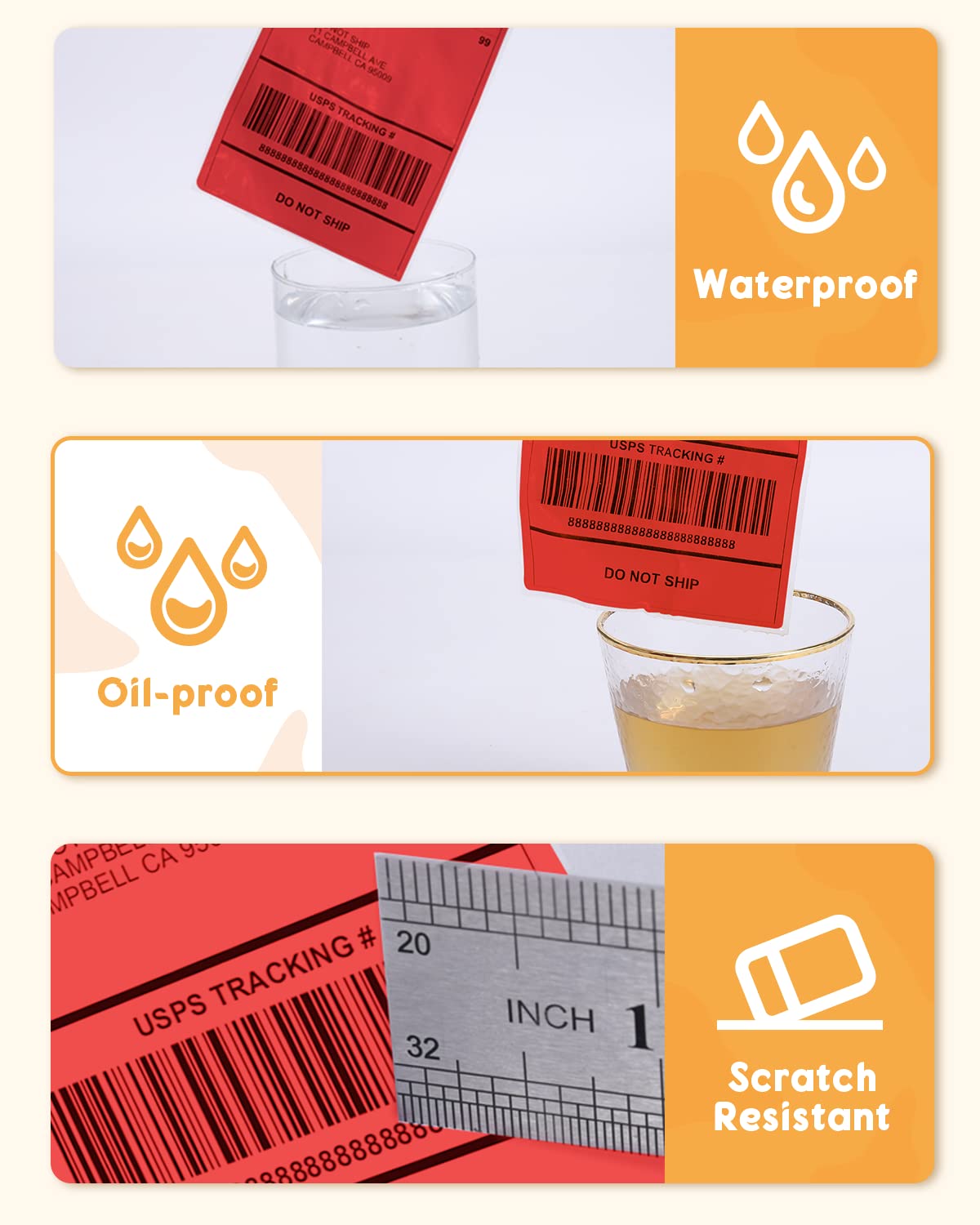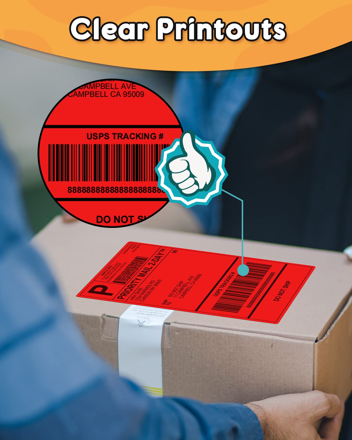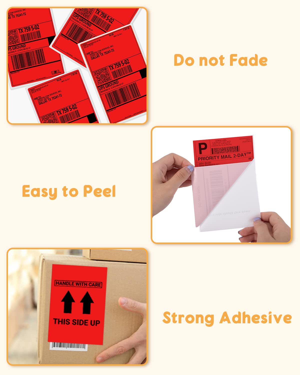 Phomemo 4x6 Thermal Paper Printer Label Thermal Direct Shipping Label Package Labels Compatible with Rollo Phomemo and Other 4 * 6 Label Printer (Pack of 500 4''x 6'' Fan-Fold Labels), Red