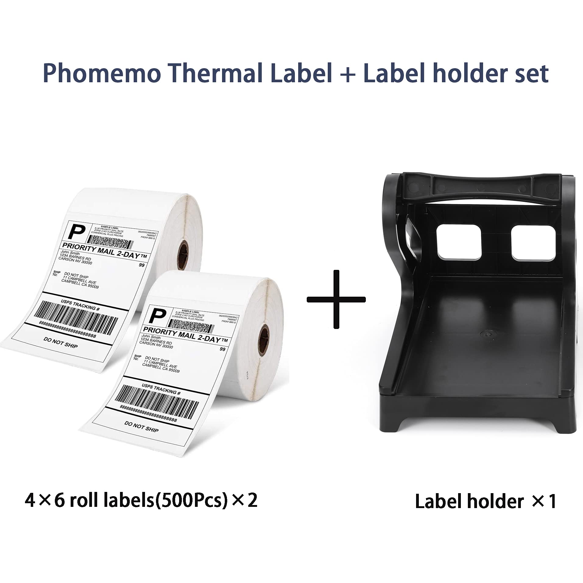 Phomemo 4x6 Thermodirektversand EtikettenThermoetikettendrucker Etikett -und Etikettenhalter, Kompatibel mit Rollo MUNBYN und allen 4 ¡Á 6 Etikettendruckern (1000 St¨¹ck Rollenetikett + Etikettenhalter)