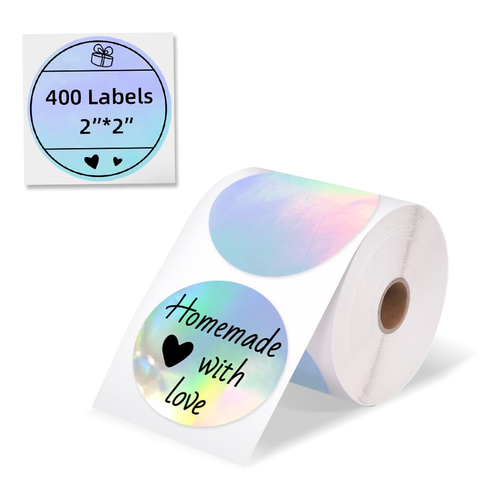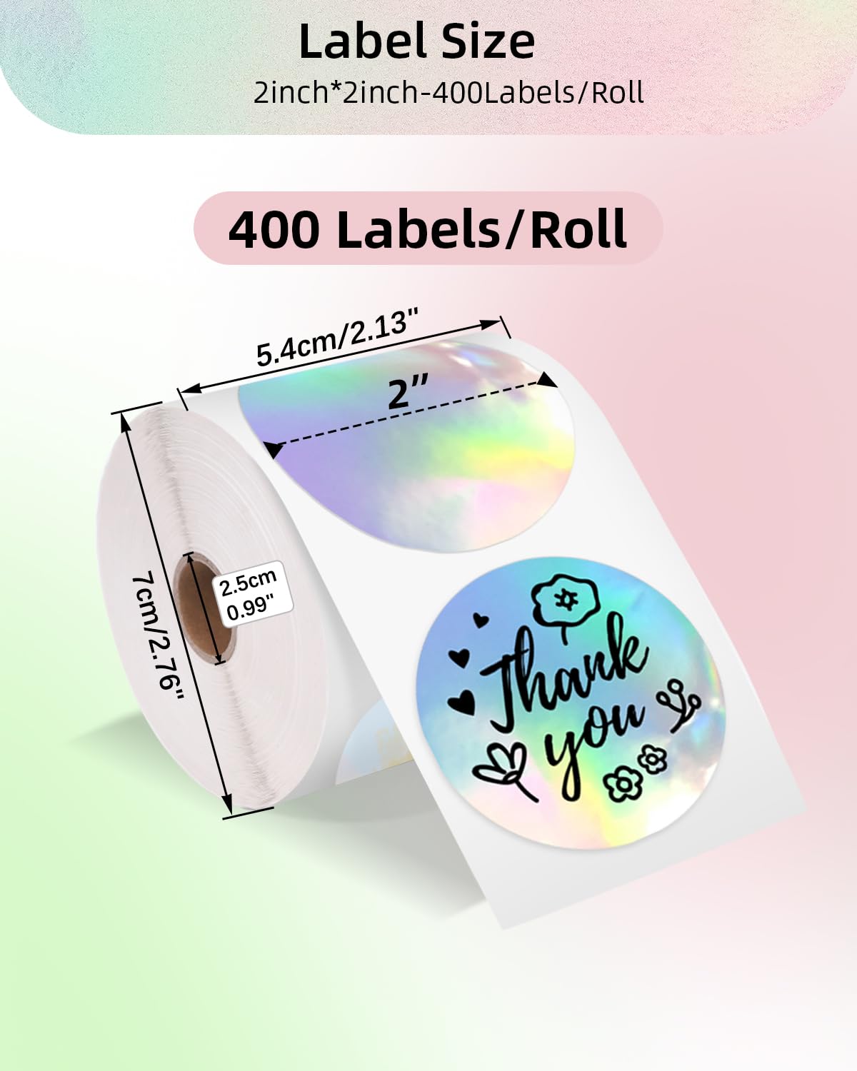 Phomemo 5,1 cm Holographic Silver Thermo-Etiketten, selbstklebendes Aufkleber-Etikett, rundes direktes Thermo-Etikett f¨¹r Dankeskarte, Logo, Name, Preis, Adresse, QR-Code, 400 Etiketten