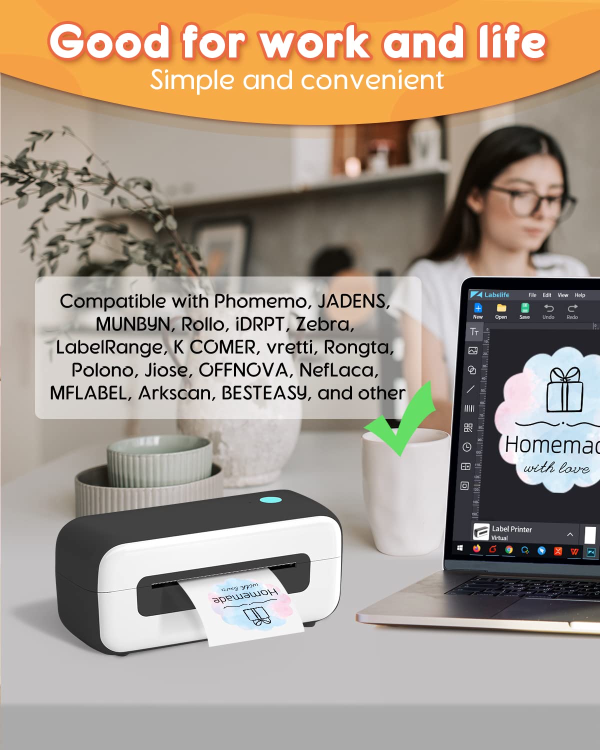 Phomemo 5 cm (2'') golvende thermische labels, zelfklevende bloemenlabel, cirkelvormig direct thermisch label voor bedankkaart, logo, naam, prijs, adres, QR-code, 500 labels, blauw-roze verloop