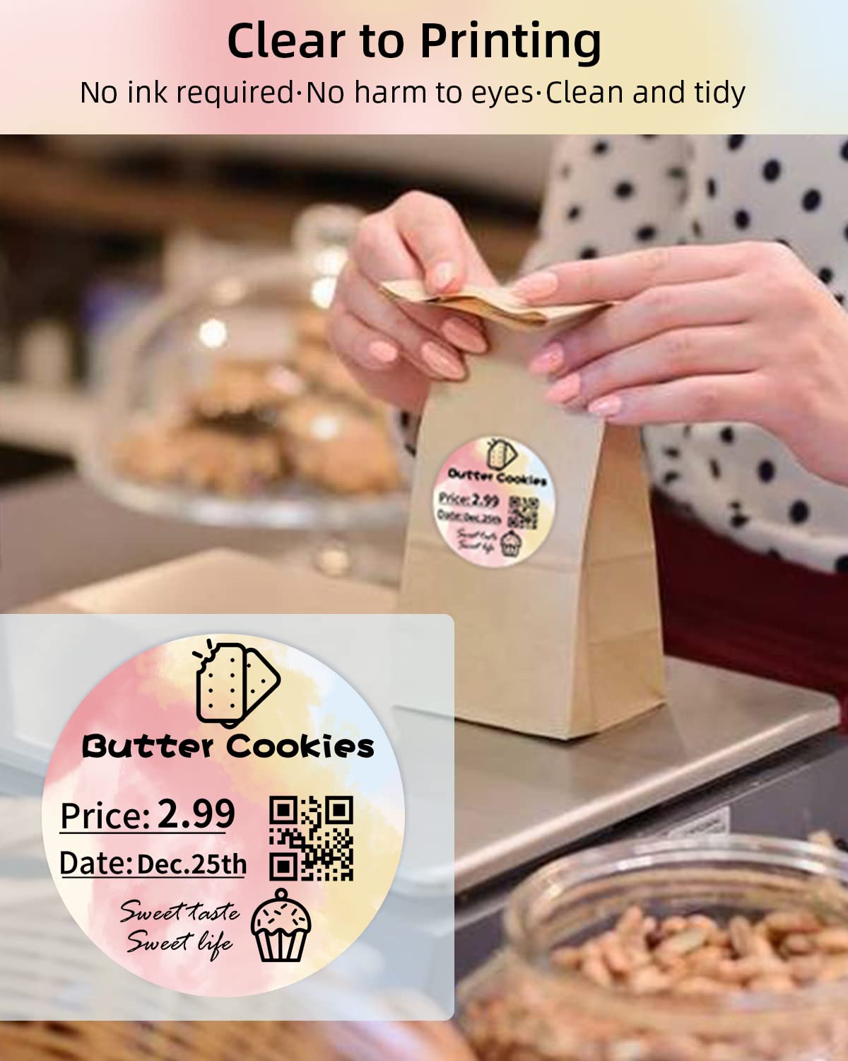 Phomemo 5 cm (2'') ronde thermische labels, zelfklevende sticker, cirkelvormig direct thermisch label voor bedankkaart, logo, naam, prijs, adres, QR-code, 750 labels/rol, kleurverloop