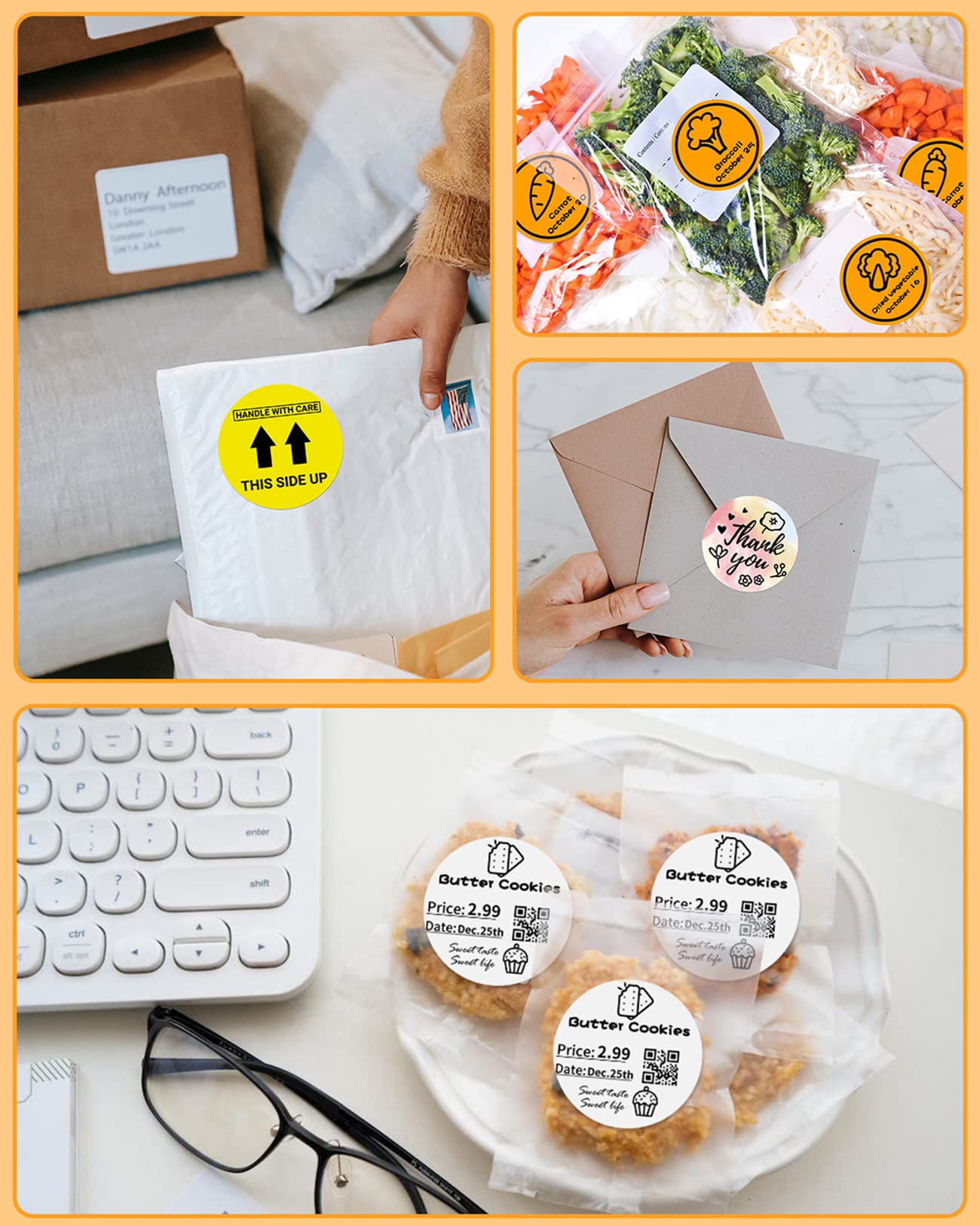Phomemo 5 cm (2'') ronde thermische labels, zelfklevende sticker, cirkelvormig direct thermisch label voor bedankkaart, logo, naam, prijs, adres, QR-code, 750 labels/rol, wit