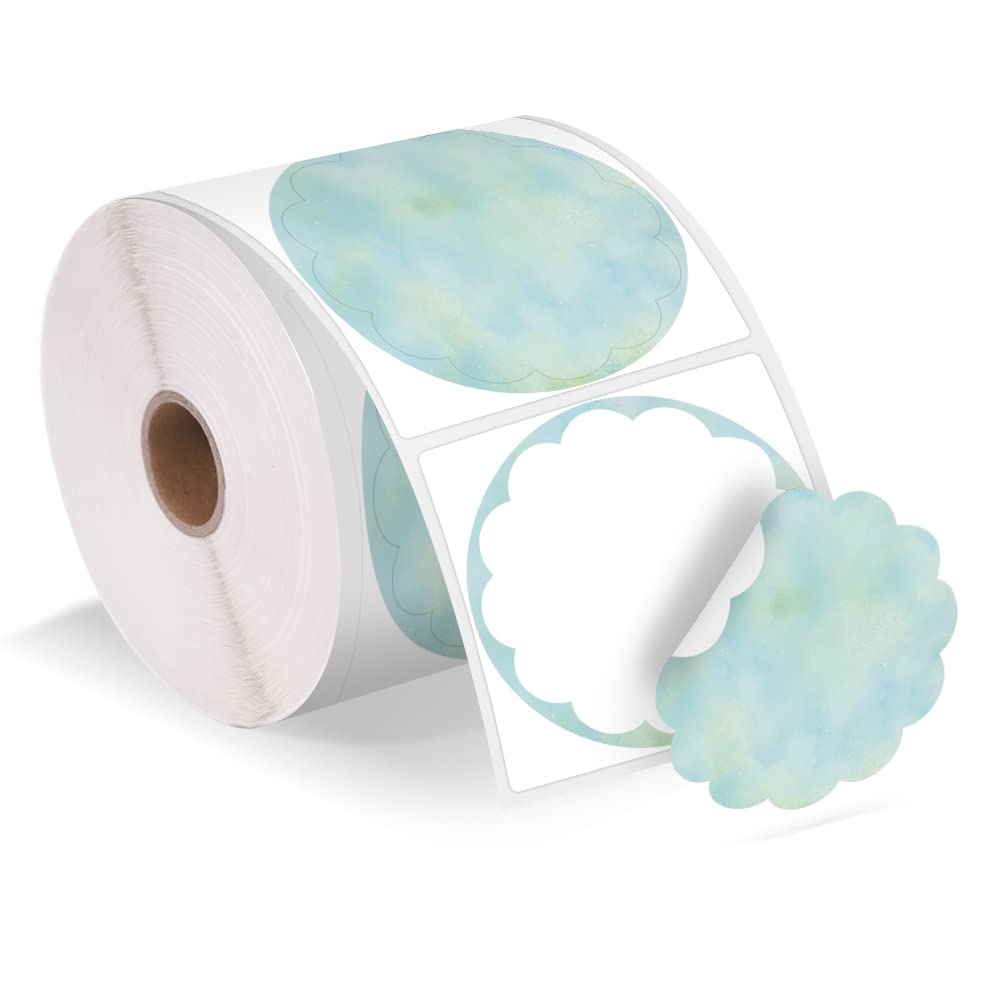 Phomemo 5 in? dalgal? termal etiketler, kendinden yap??kanl? ?i?ek ??kartmas?, te?ekk¨¹r kart?, logo, isim, fiyat, adres, QR kodu, 500 etiket, mavi-ye?il ge?i?li