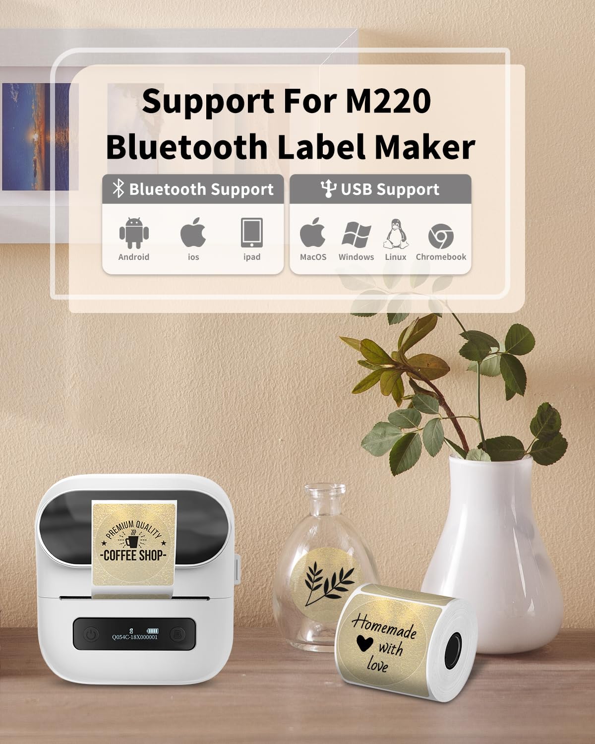 - Phomemo M110 ¨¦tiquettes rondes autocollantes polyvalentes, compatibles avec les imprimantes d'¨¦tiquettes thermiques M110/M120/M200/M220/M221, 50x50 mm (1,96'' x 1,96''), 140 ¨¦tiquettes/rouleau, couleur:Or.
