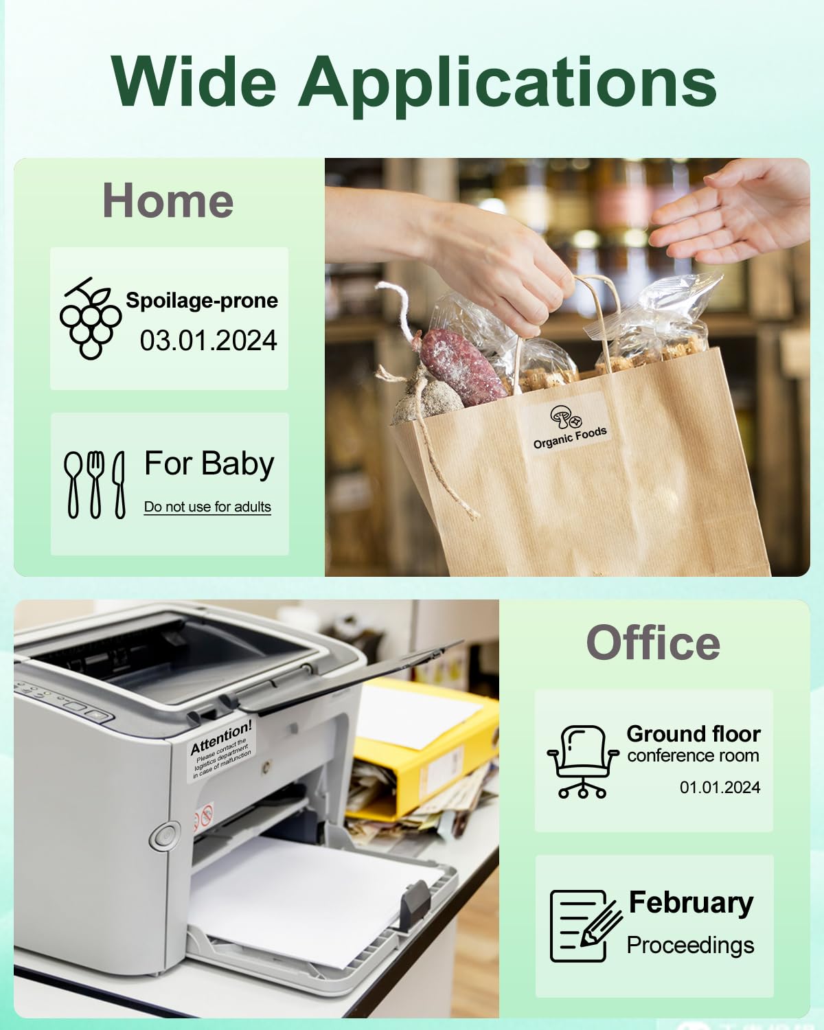 - Multifunktional: Das Thermo-Etikett kann f¨¹r Erinnerungs-Etiketten, Klassifizierungs-Etiketten, Inventar, Gr??en-Etiketten, Labornummern-Etiketten, Sortierung von Schuhen, Taschen und Kleidung, etc. verwendet werden