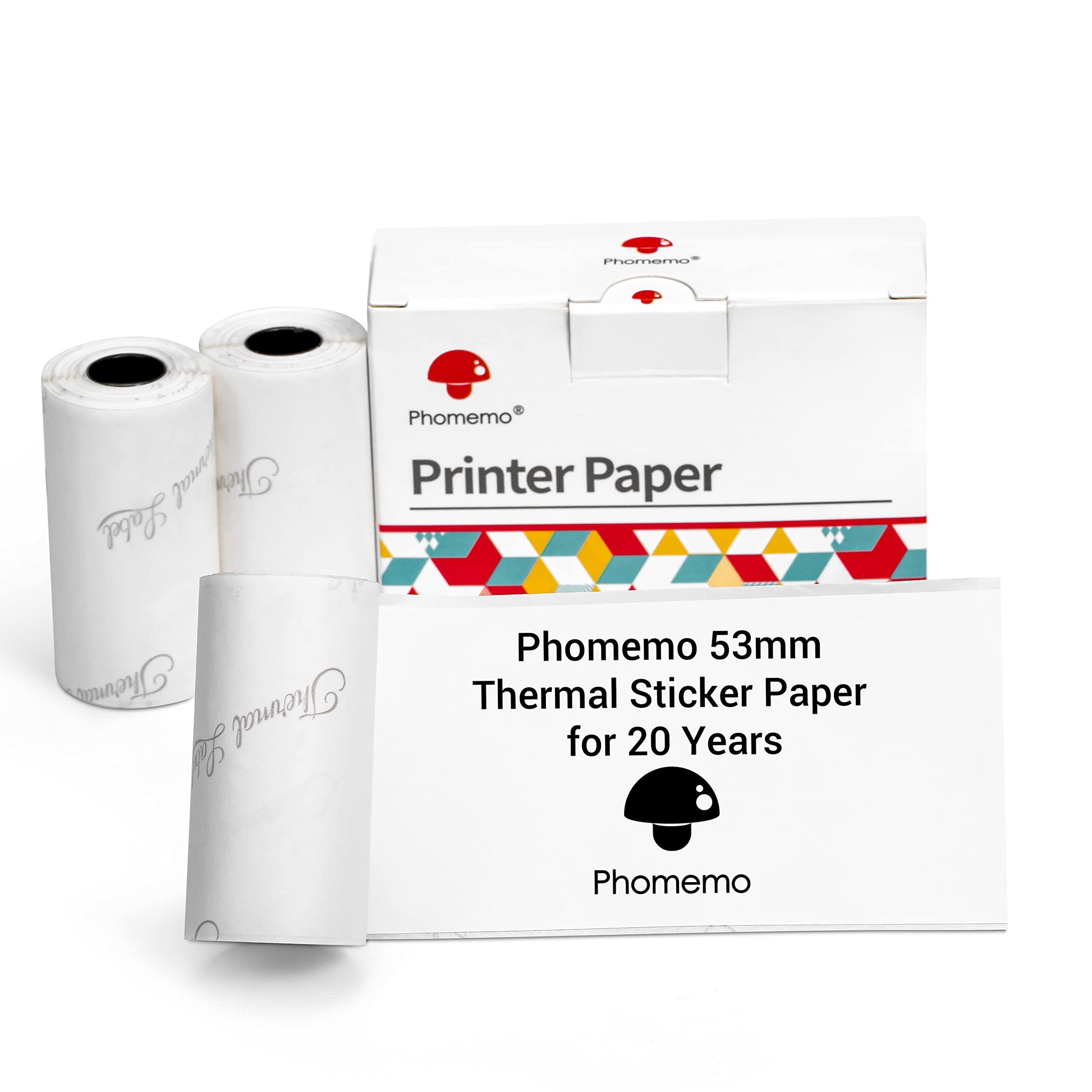 - Packungsinhalt – 3 Rollen Phomemo selbstklebendes Thermo-Aufkleberpapier, Produktgröße – 53 mm x 3,5 m (3,15'' x 137,8''); Kompatibel mit Phomemo M02/M02S/M02 Pro/M03/M03AS/M04S/M04AS Minidrucker.
