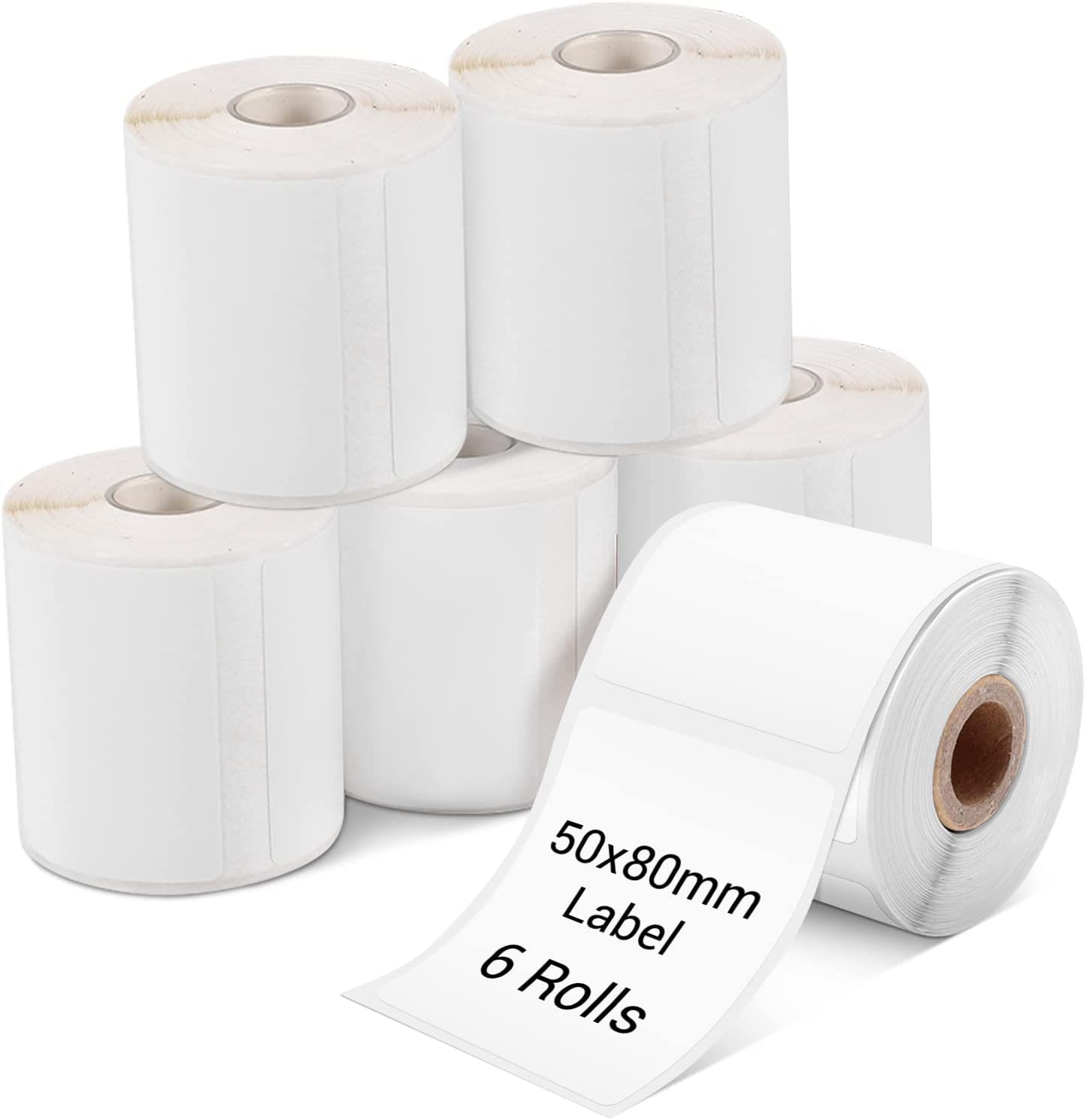 Phomemo 6 rollen M110 label, compatibel met Phomemo M110, M110S, M120, M200, M220, M221, thermisch papier, 50 x 80 mm, vierkant, multifunctioneel label, zelfklevend, 100 etiketten/rol