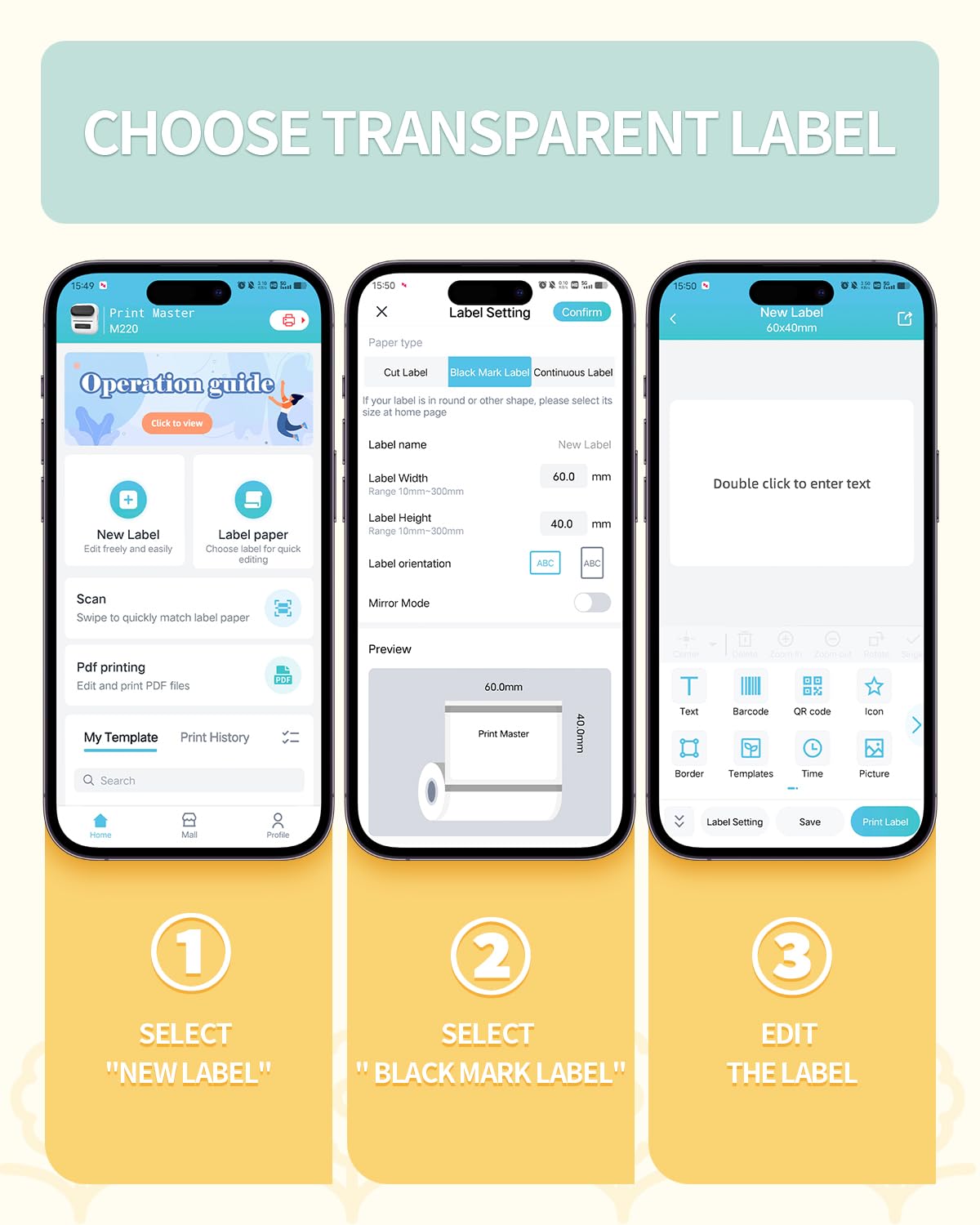 - Kompatibel f¨¹r: Phomemo M220 M200 M221 Etikettendrucker f¨¹r Schwarz-Wei?-Thermodruck, Installieren Sie ''Print Master'' APP von App Store und Google Play -> schalten Sie den Drucker ein und schalten Sie die BlueTooth-Verbindung ein