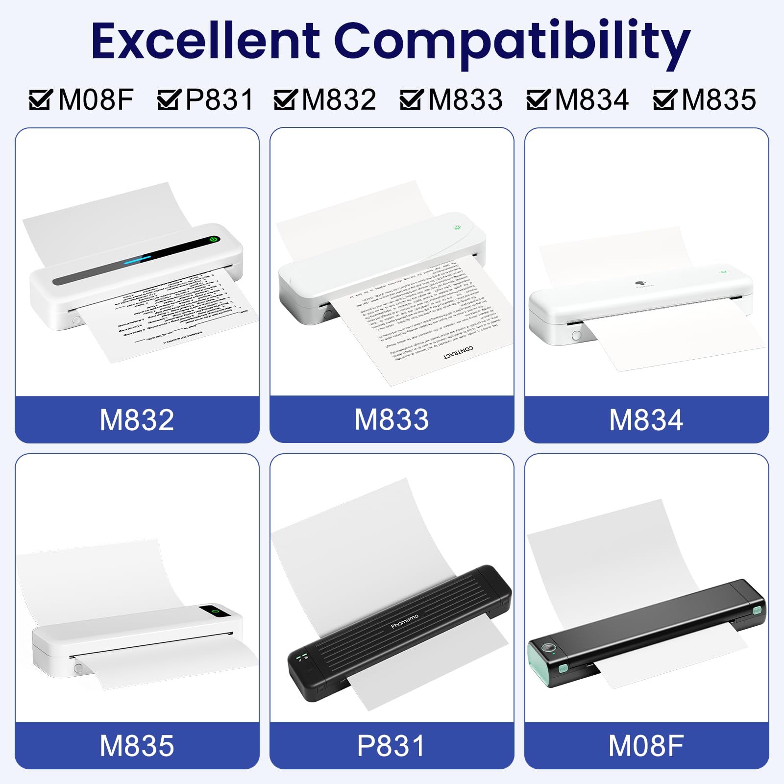 - Modèle compatible - Compatible avec l'imprimante thermique portable Phomemo M08F/P831/M832/M833/M834/M835. Avis : Ne fonctionne pas avec les imprimantes laser/imprimantes à jet d'encre/copieurs et les imprimantes de marque autre que Phomemo