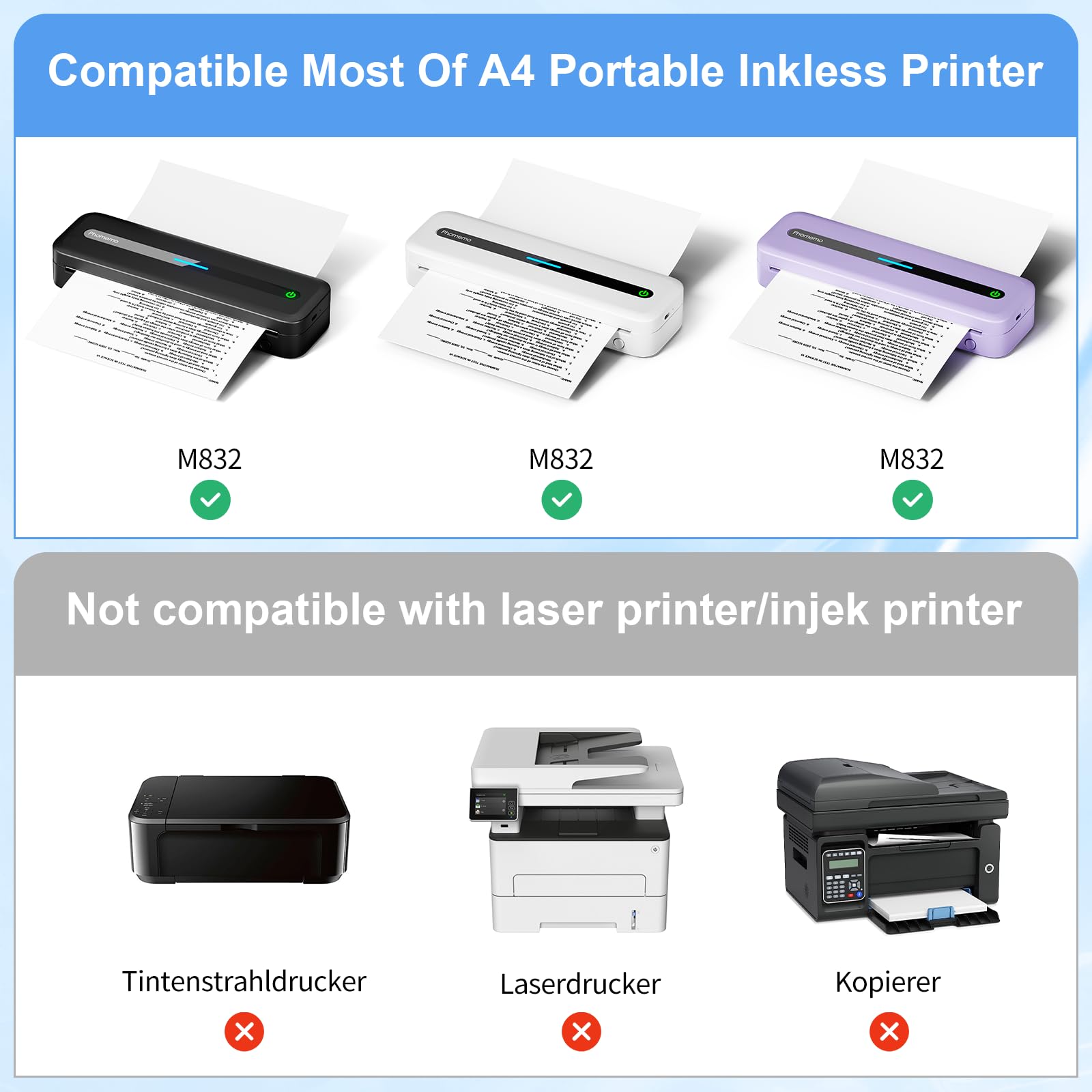 - Multi-compatibility- This A4 thermal paper compatible with Phomemo M832/M833, Munbyn, Jadens,HPRT and other portable A4 printer.