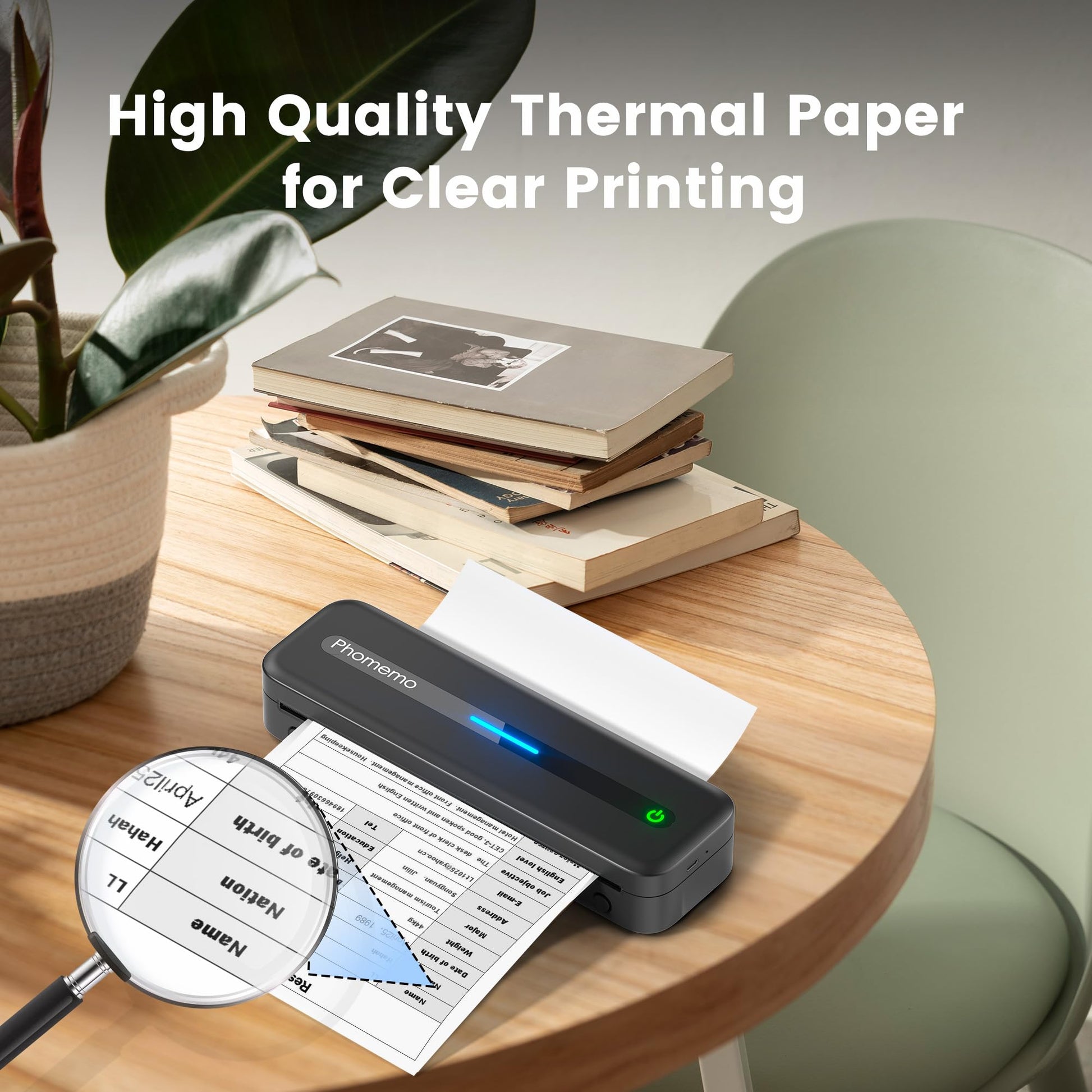 - [Easy to Use] Simply follow the arrow instructions to load the A4 thermal paper correctly and smoothly into the Phomemo M832/M834 Inkless Printer and it's ready to use, you can see the installation instructions in the video on the page, perfect for people with outdoor printing needs, saving time and printing consistently