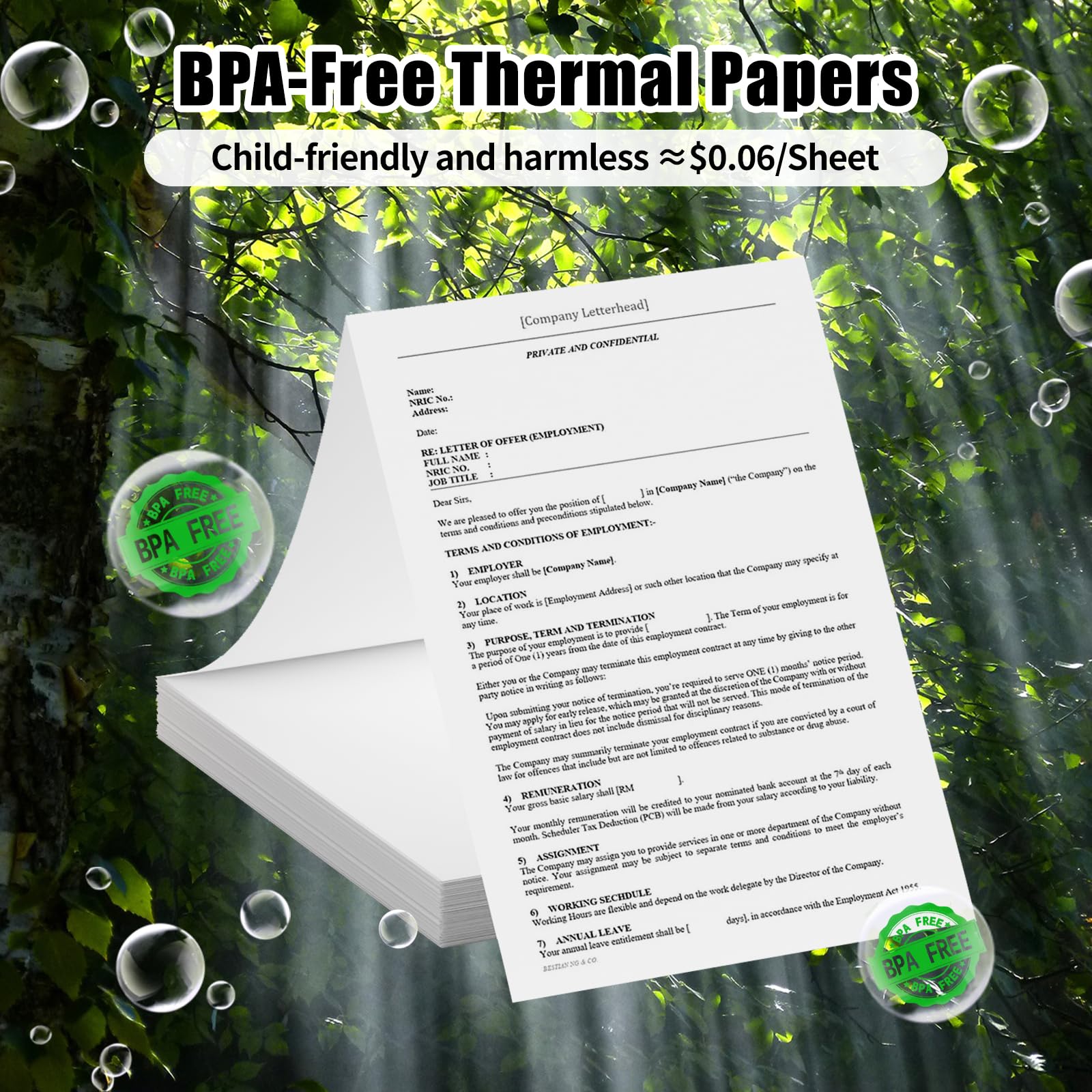 - Wide Compatibility - M832 thermal printer Paper is Compatible with Phomemo, COLORWING, PeriPage, Odaro, Itari, M832/ M833/ M834/M835 M08F A4 & US-Letter, HPRT MT800 MT800Q, and a variety of letter thermal printers