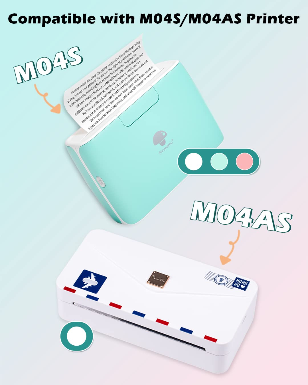 - Phomemo Light Pink/Blue/Purple Adhesive Sticker Thermal Paper, 77mm width, black text, 3 Rolls in box, Each roll length is 3.5m, compatible with Phomemo M04S/M04AS mini pocket printer.Storage for 20 years.