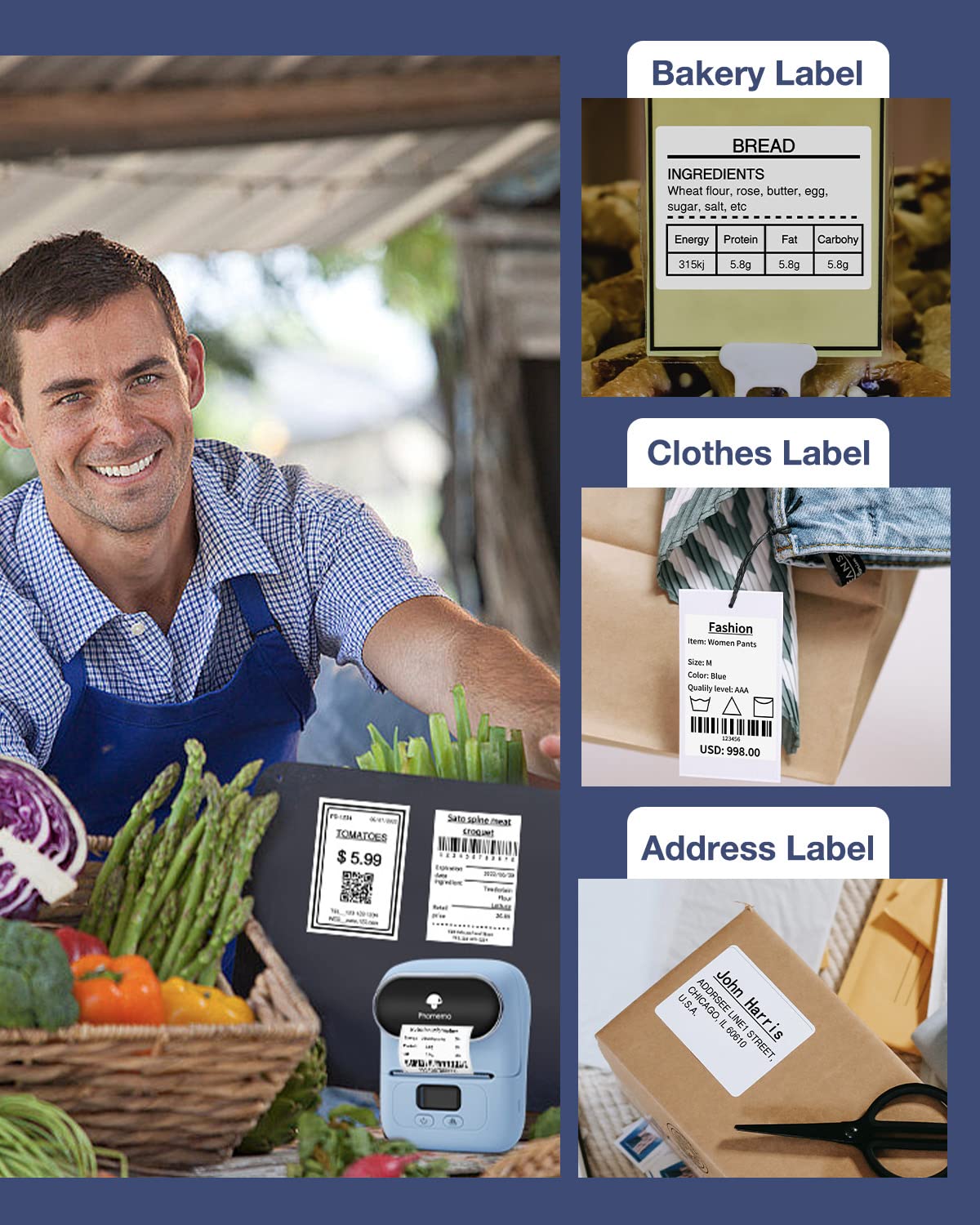 - Versatile Label Maker - Mini portable label maker easy to get barcode/address/clothing/ price/ cable/ jewelry/ folder labels. The label is waterproof and oil-proof, easy to tear without leaving glue, a helpful assistant for home or business. Suitable for Christmas gift