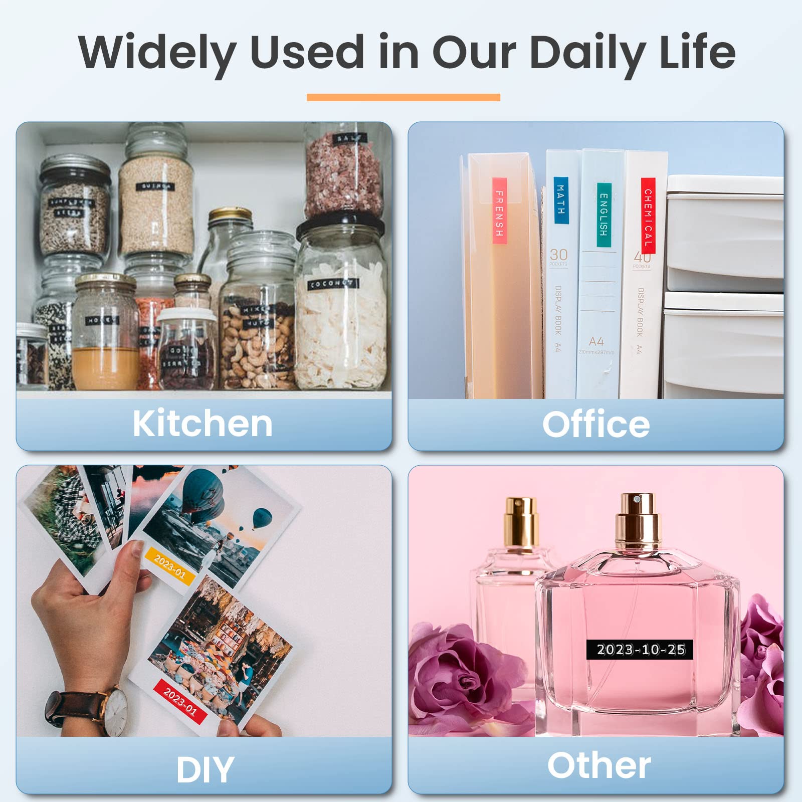 - Weit verbreitet im Leben: Die gepr?gte Etikettenmaschine ist leicht und tragbar (Gewicht: 150 g), und die gedruckten Aufkleber k?nnen auf Gl?ser, Kosmetikboxen, Mappen, Gru?karten, Geschenke f¨¹r K¨¹che, B¨¹ro, Schule, Haus, etc. geklebt werden. Es ist ein lustiges DIY f¨¹r Kinder, um ihre Kreativit?t zu stimulieren