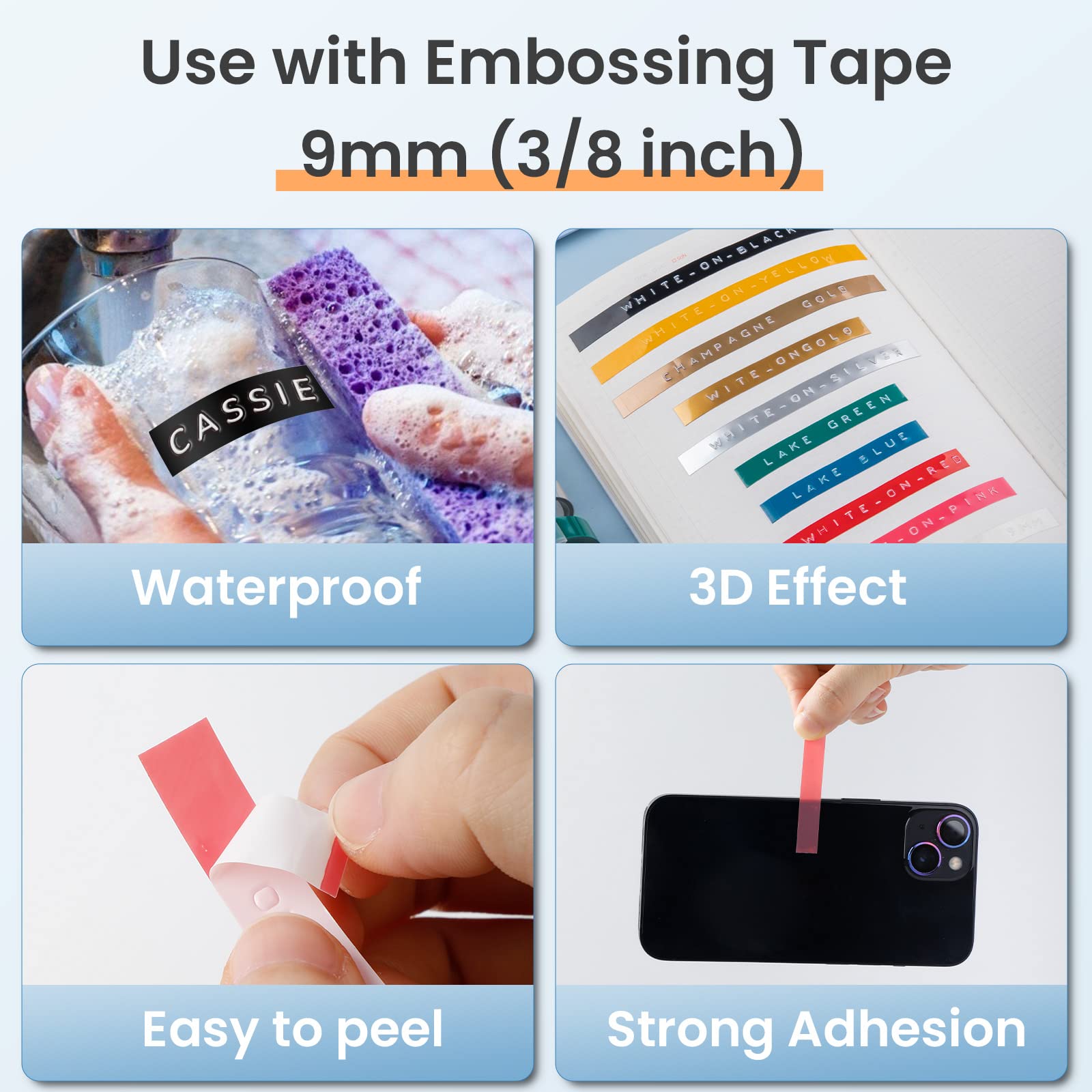 - 3D-Effekt: Kompatibel mit 9 mm£¨3/8 Zoll£© Embossing Tape, Sie erhalten einen 3D-Druck-Effekt, die Etiketten sind wasser- und ?lbest?ndig, leicht abziehbar, stark haftend, aber nicht klebend, wenn sie entfernt werden