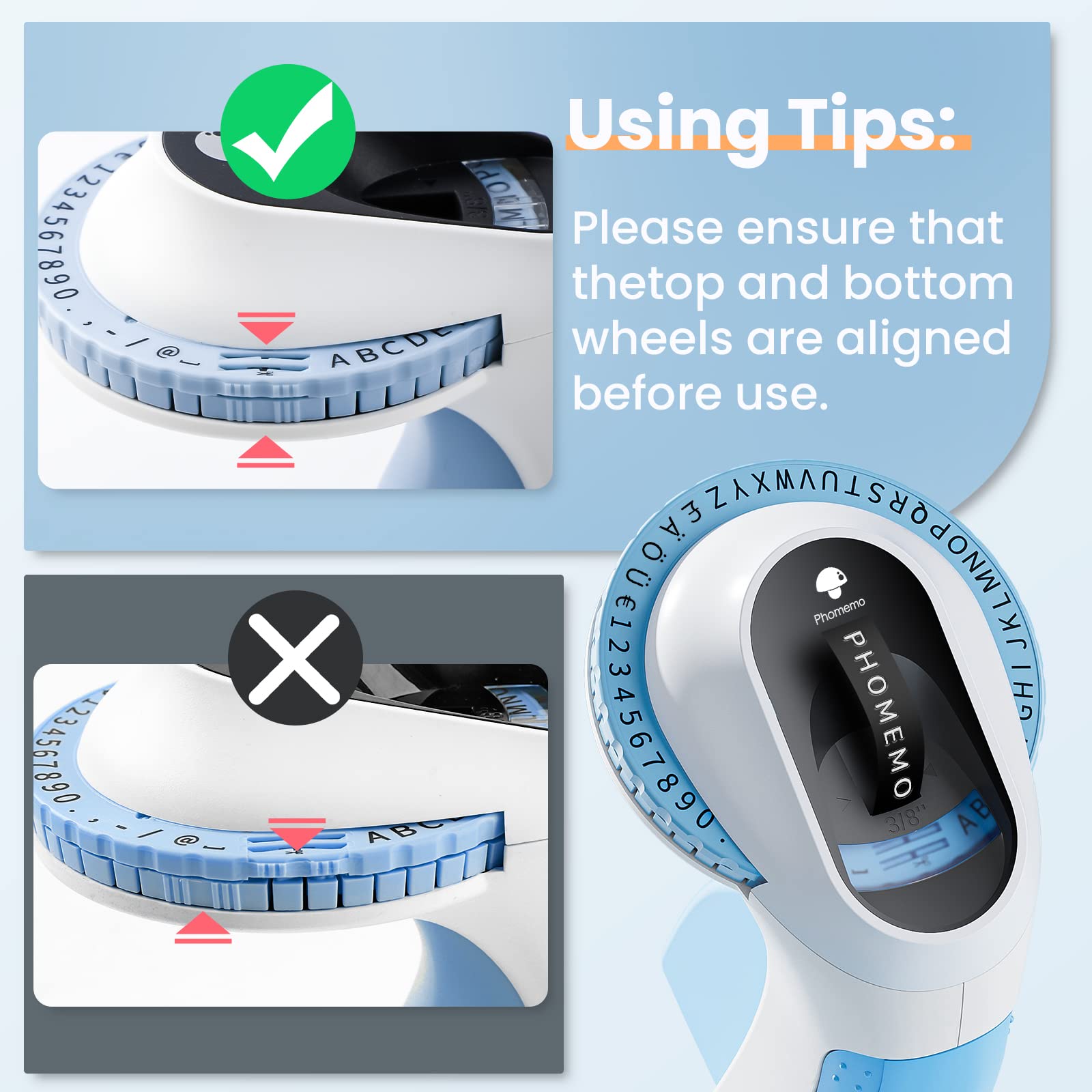 - Phomemo Etikettiergeräte: Einfach zu bedienen, keine Notwendigkeit, mit dem Telefon zu verbinden, keine Batterien und keine Tinte erforderlich; Sie müssen nur leicht drehen Sie das Rad und drücken Sie den Druck manuell (Tipps: Bitte stellen Sie sicher, dass die oberen und unteren Räder vor dem Gebrauch ausgerichtet sind)