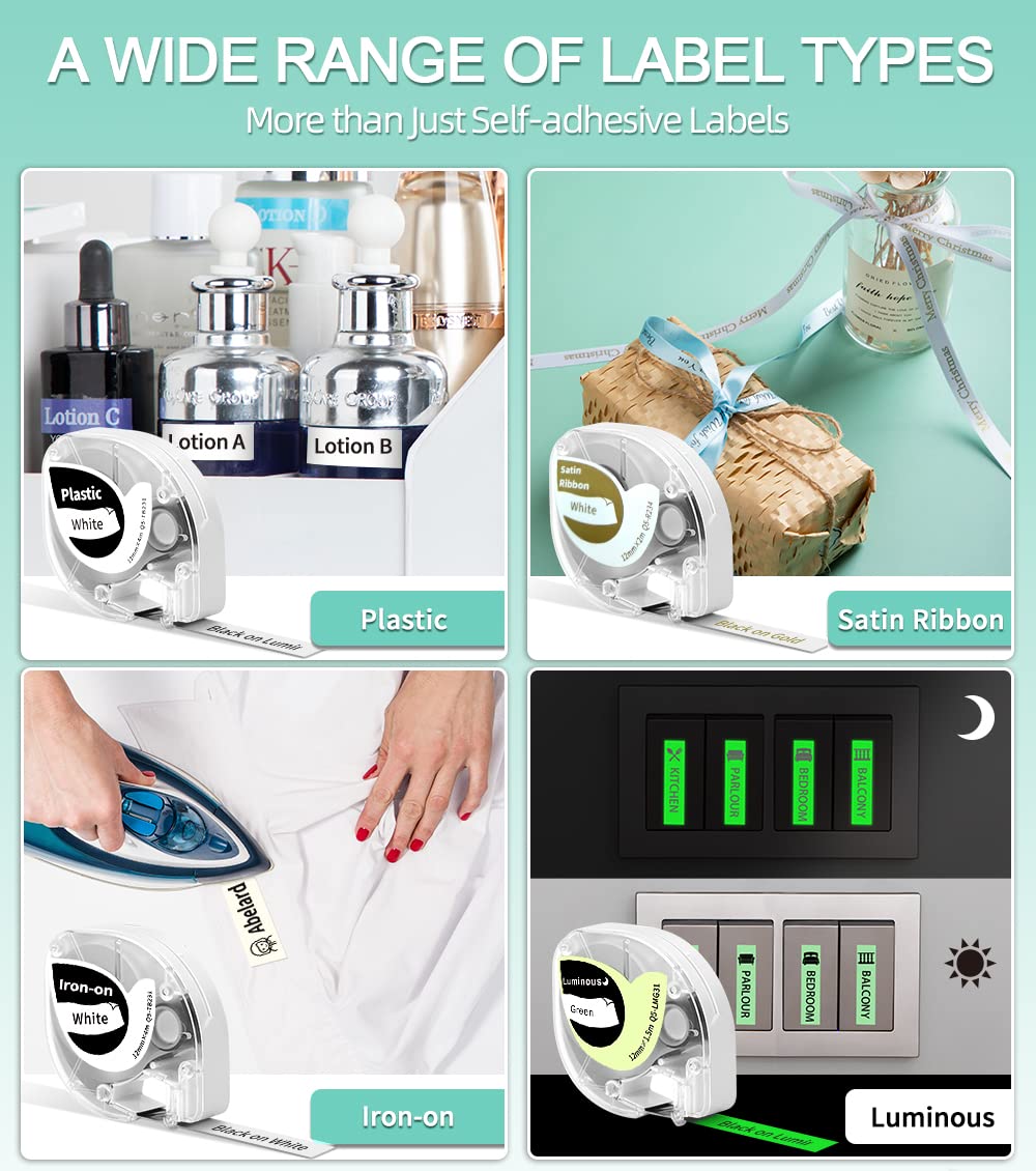 - Hunderte von P12-Etikettenbändern: Dieses beschriftungsgerät bluetooth druckt auf dem P12 etikettenband, das in einer breiten Palette von Farben und Materialien erhältlich is