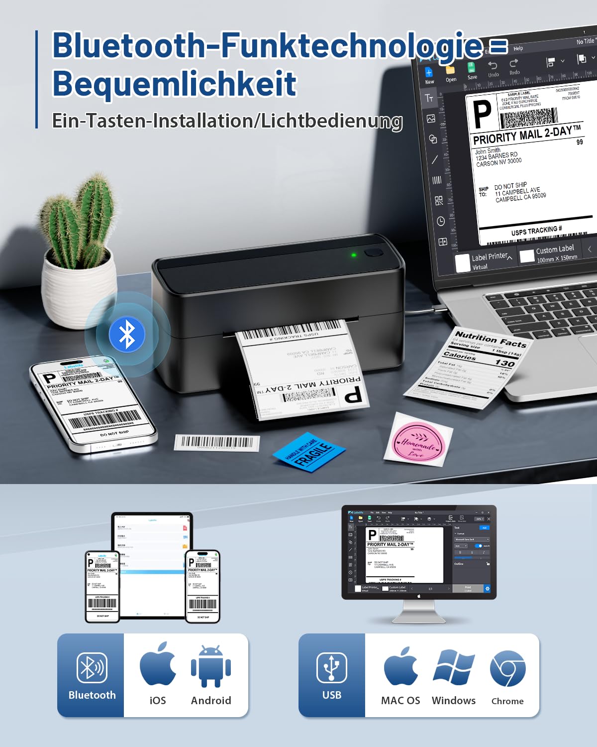 Phomemo Bluetooth etiket yaz?c?, DHL termal yaz?c? 4XL etiket yaz?c?s?, Mac/PC i?in, Nakliye etiket yaz?c?s?, barkod, Amazon, Ebay, Etsy & Shopify, DHL ups i?in etiket yaz?c?s?, siyah