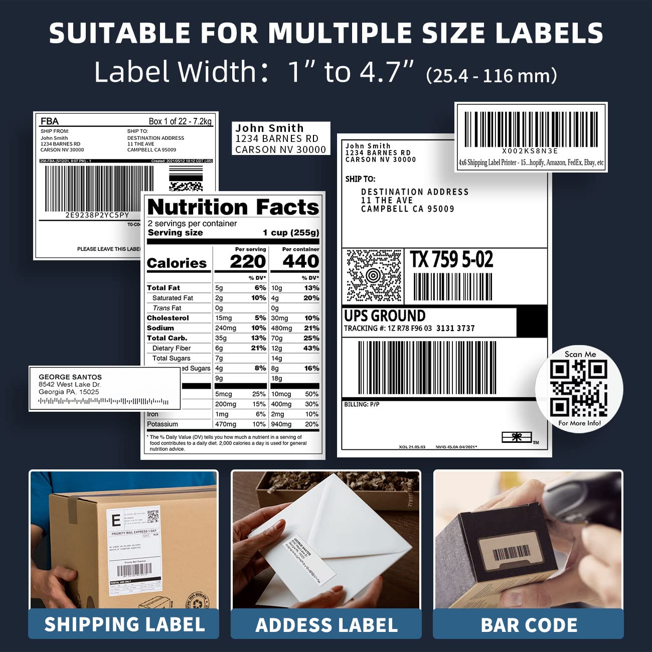 - [Etiket oluşturmayı kolaylaştırın]PM241BT etiket yazıcımız 1 inç - 4,6 inç genişliğindeki tüm termal çıkartmalarla kullanılabilir. Bu barkod etiket yazıcısı ile kargo etiketleri, yuvarlak logo etiketleri, adres etiketleri ve daha fazlasını yazdırabilirsiniz. Postaya gitmeden çevrimiçi yazdırın! Ürünlerinizi vurgulamak için perakende mağazaları ve el işi şirketleri için özel olarak geliştirilmiş önceden hazırlanmış etiket şablonlarının tadını çıkarabilirsiniz.