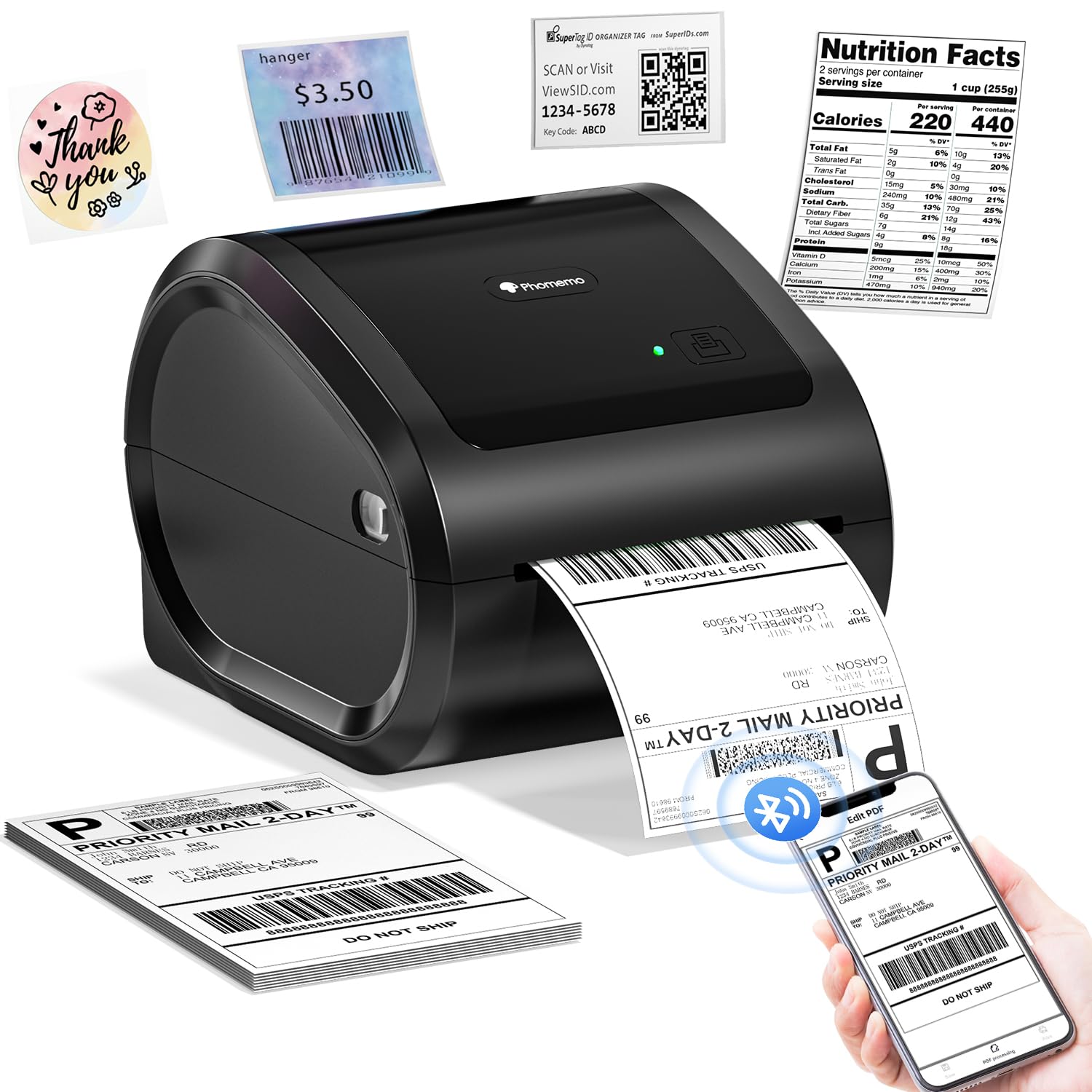 Phomemo Bluetooth Etikettendrucker, DHL Label Printer 4x6 Ettikettendrucķer Labeldrucker Versandetiketten Druckerfür Versandpakete Kompatibel mit Ebay, Amazon, Etsy,Ups, Wish, Shopify, Zalando, Otto