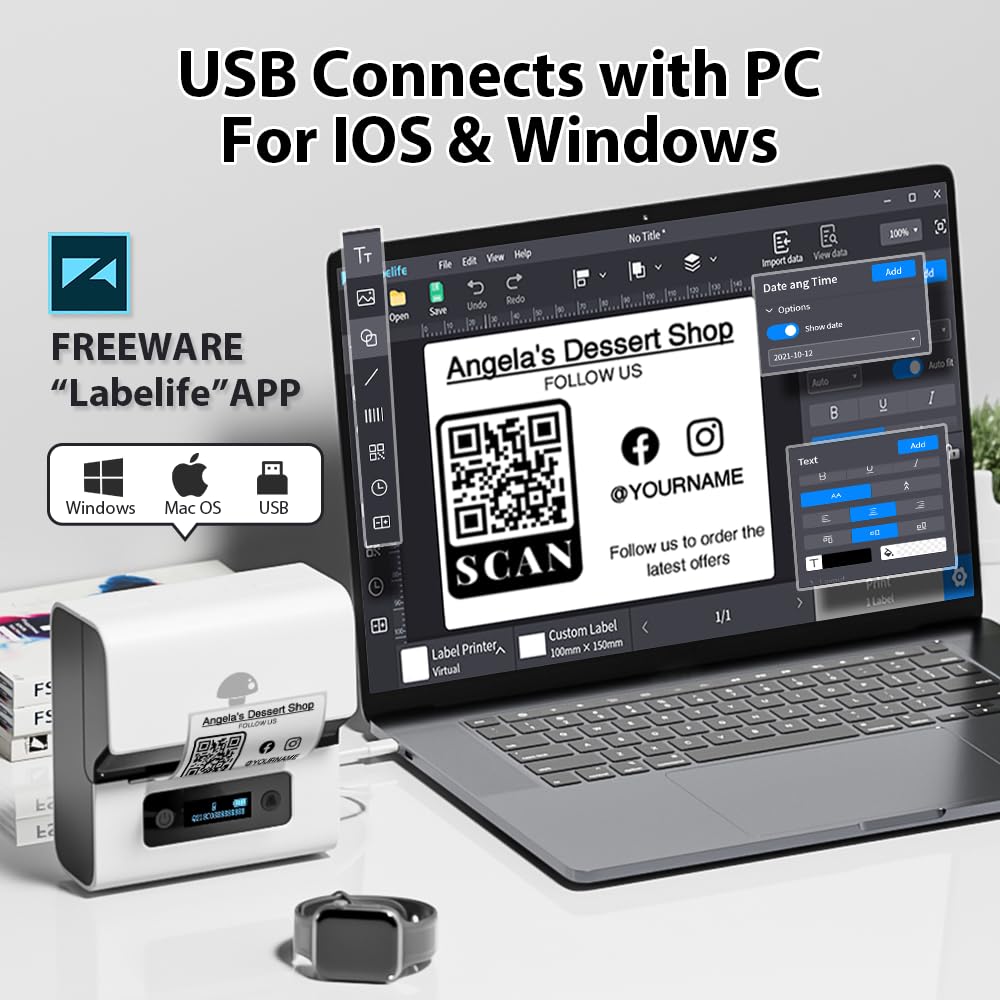 - Full Compatibility - Connects Phones and Tablets via Bluetooth. Connects PC by USB. Compatible with Android/IOS/Windows. Printing with ''Print Master'' App or Labelife software. Please follow the software installation guide