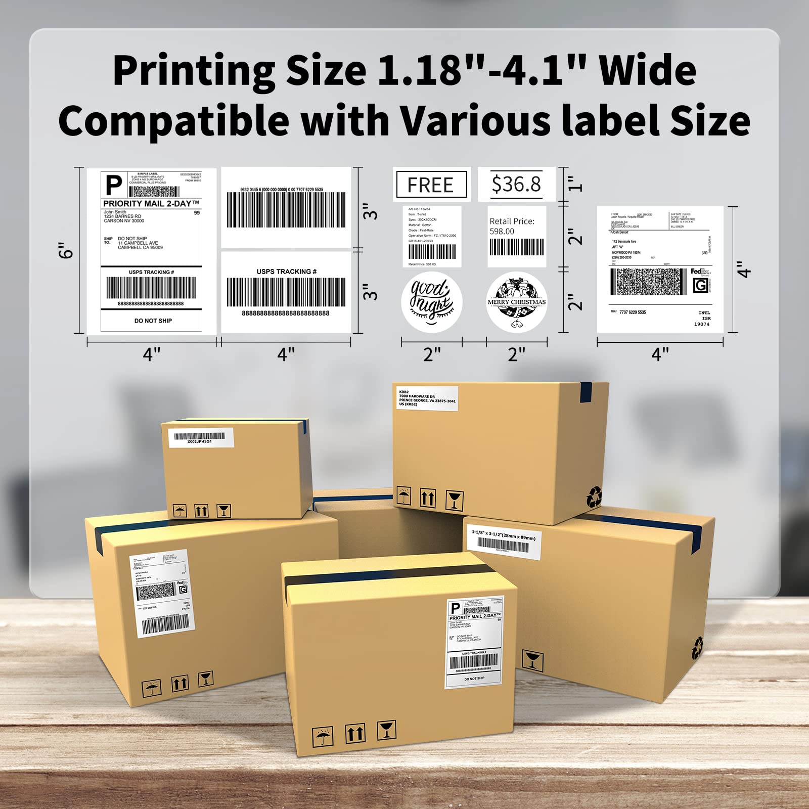 - [widely Compatibility] - Phomemo Thermal shipping label printer is compatible with most platforms, such as eBay, Amazon, Easy, Shopify, ShipStation,etc.Besides, Thermal label printer for shipping packages, available for thermal labels with width of 1''-4.6''.With this desktop label printers, you can print shipping labels, logo labels and more.