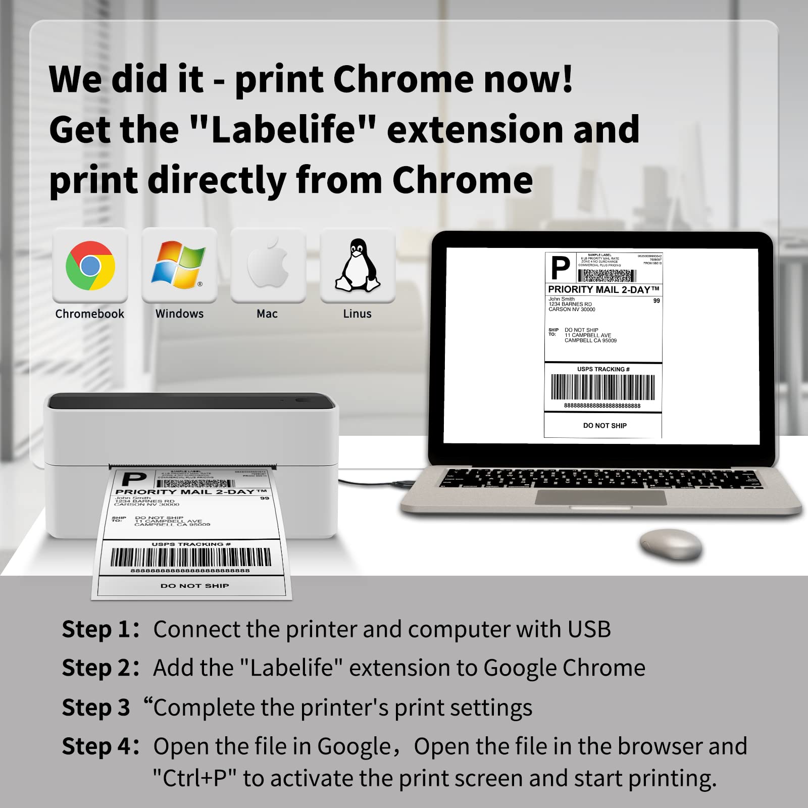 - [Bluetooth & USB Label Printer] - Our powerful shipping label printer: ¢ÙNot only do support printing only with a smartphone/tablet, connected with bluetooth, (bluetooth connection for iOS, Android); ¢ÚBut also can support printing with a computer, connected with a USB cable, (USB connection for Windows, Mac, Linux).(All platforms printing, please firstly remember to download labels on the platform, then upload labels to the editor APP ''Labelife'' for printing).