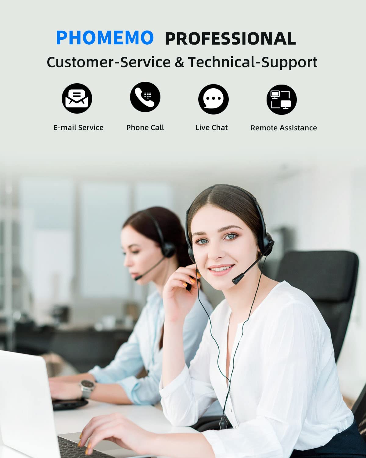 - ??PROFESSIONAL AFTER-SALE SERVICE - Phomemo offer a free replacement service up to 12 months. Provide free lifetime technical support, includes ?live chat, ?phone calls(from 9:00am to 18:00pm, Working days) and ?emails, even remote-desktop operations support as you need.