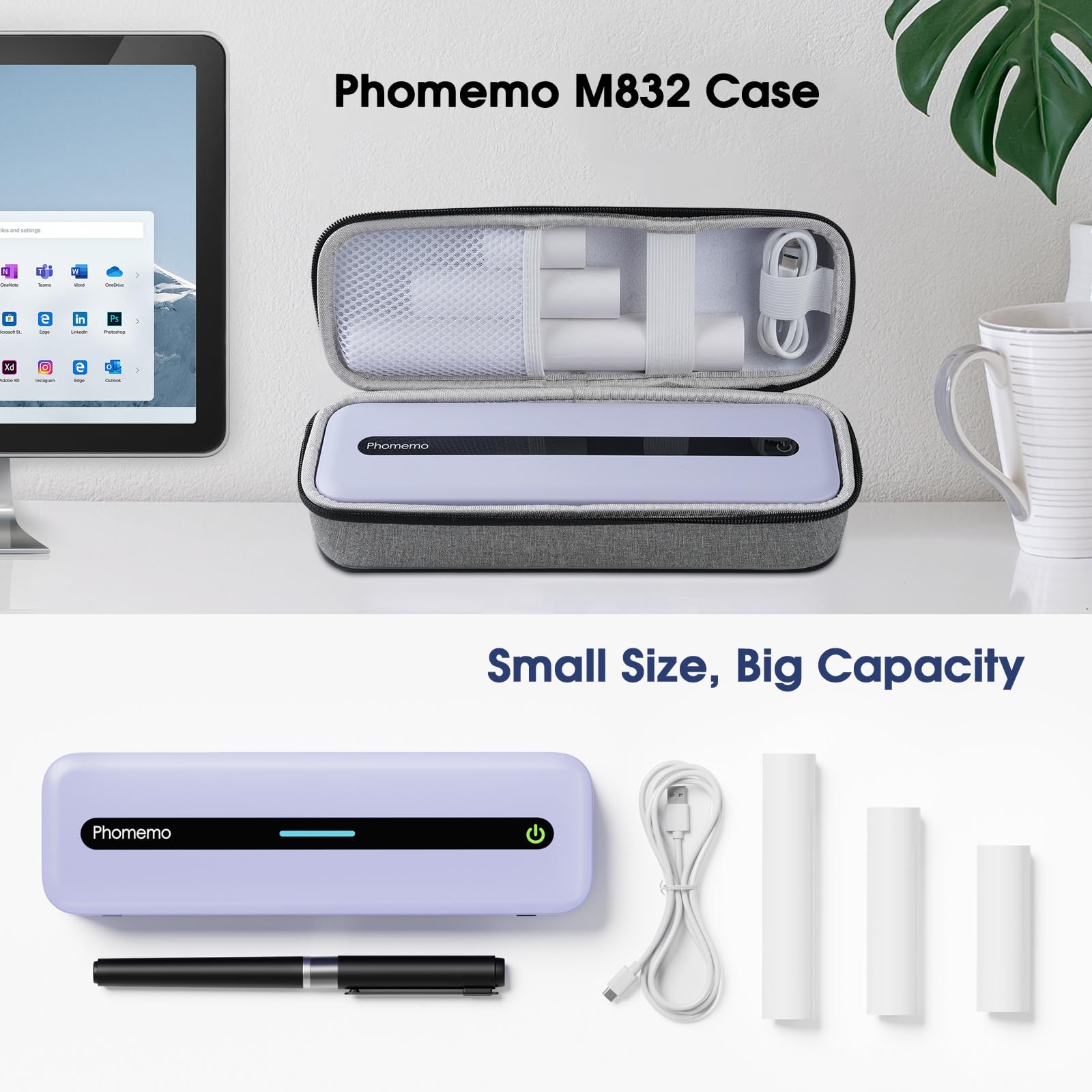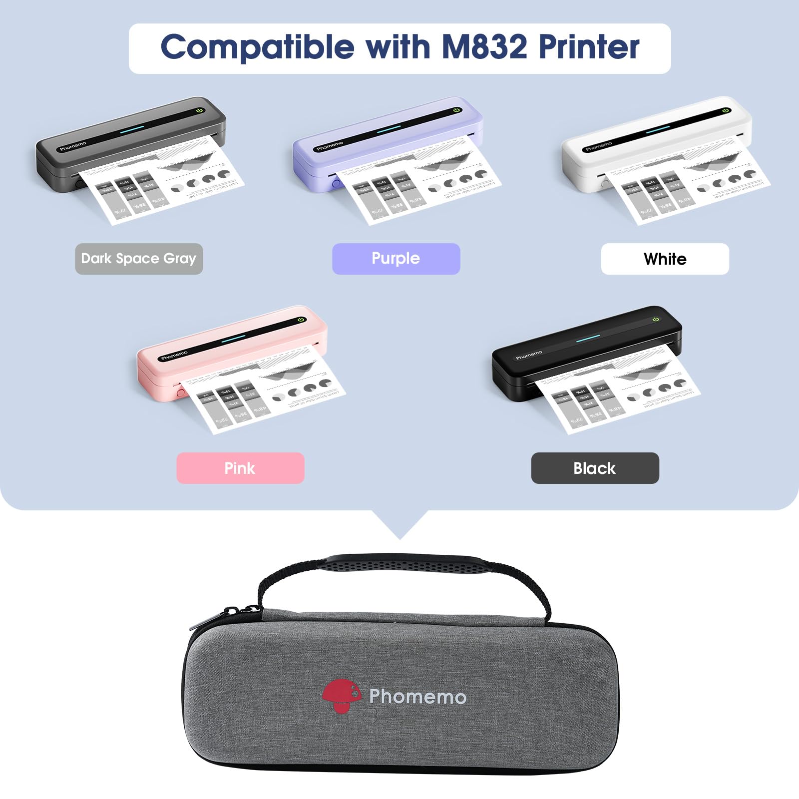 Phomemo Carrying Bag, Compatible with M832 Portable Printer, Storage Holder Paper & USB Cable, for Wireless Mobile Travel Printer(Box Only), Grey