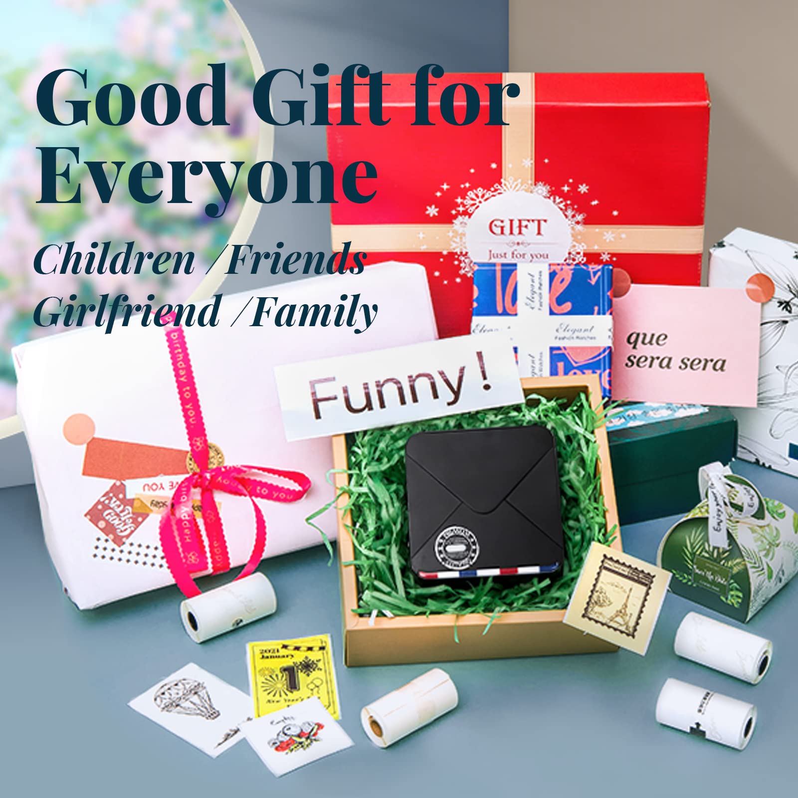 Phomemo Cep yazıcı, mini yazıcı, termal fotoğraf yazıcı, taşınabilir Bluetooth yazıcı, iOS ve sistem için 300 DPI HD baskı, sayma işaretleri, fotoğraf baskısı, iş için uygun, siyah
