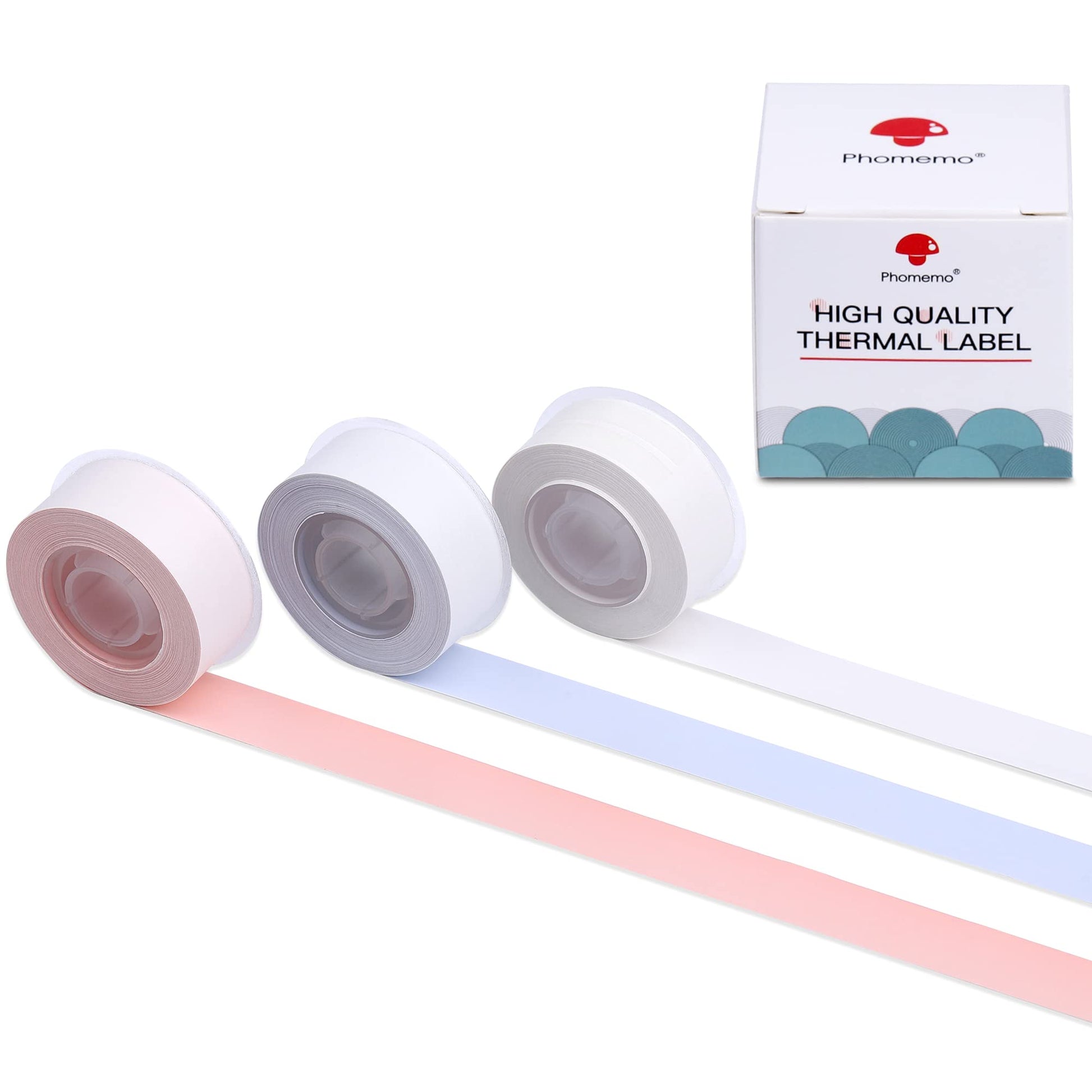 Phomemo D30 Adhesive Colorful Labels, Labels/Roll, Black on White/Blue/Pink, 3 Rolls