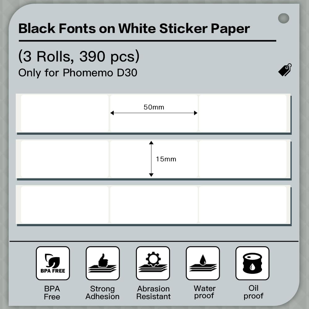 Phomemo D30 Bia?e etykiety termiczne - samoprzylepne wodoodporne olejoodporne 15 x 50 mm / 0,59 x 1,97 cala, 3 rolki
