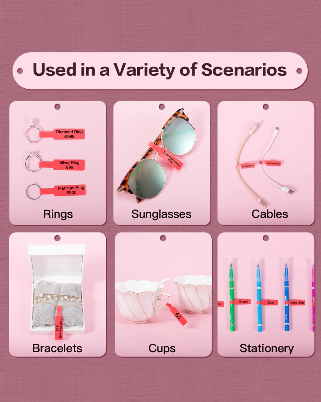 - Applicable to Home & Business: 12.5x74+35mm/0.49x2.91+1.38inch D30 thermal printer paper sticker may be used for jewelry labels, classification of cables or wires, price tags, sunglasses, bracelets, hair bands, necklaces and etc.