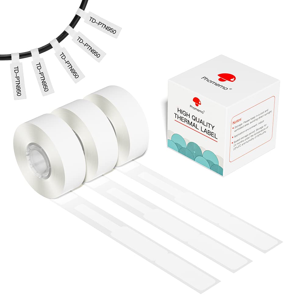 Phomemo D30 D30Pro Lot de 3 rouleaux de papier autocollant pour imprimante thermique - 12,5 x 74 + 35 mm - Pour la revente des supermarchés - Blanc