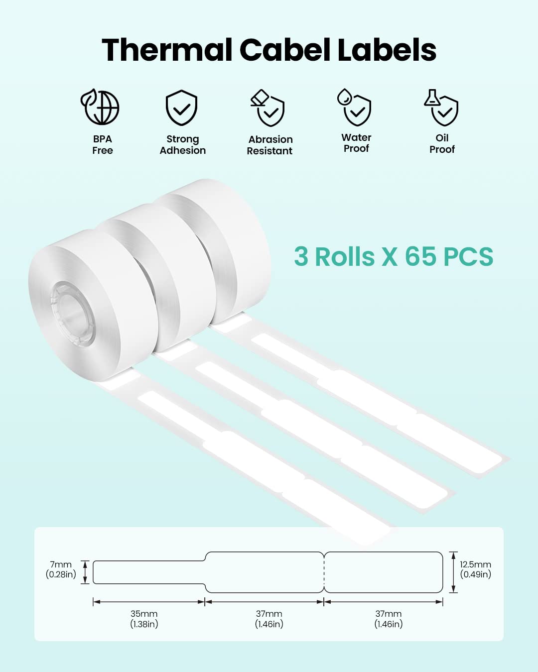 Phomemo D30 D30Pro - Rotolo di carta per etichette per gioielli, 12,5 x 74 + 35 mm, per la rivendita di supermercati, 3 rotoli, colore: bianco